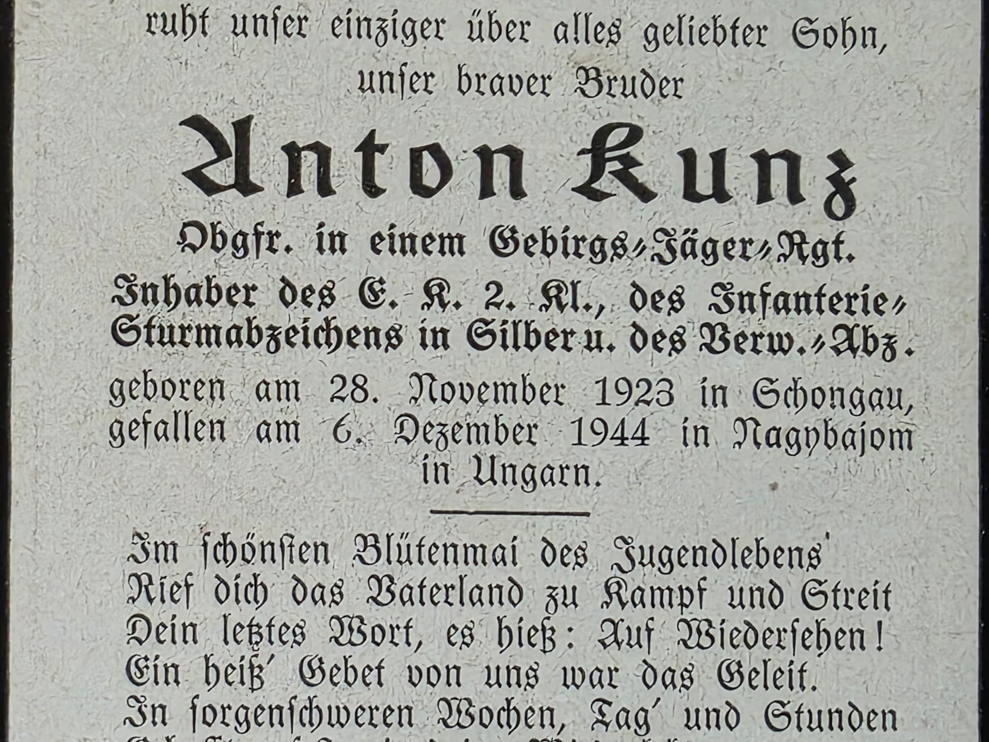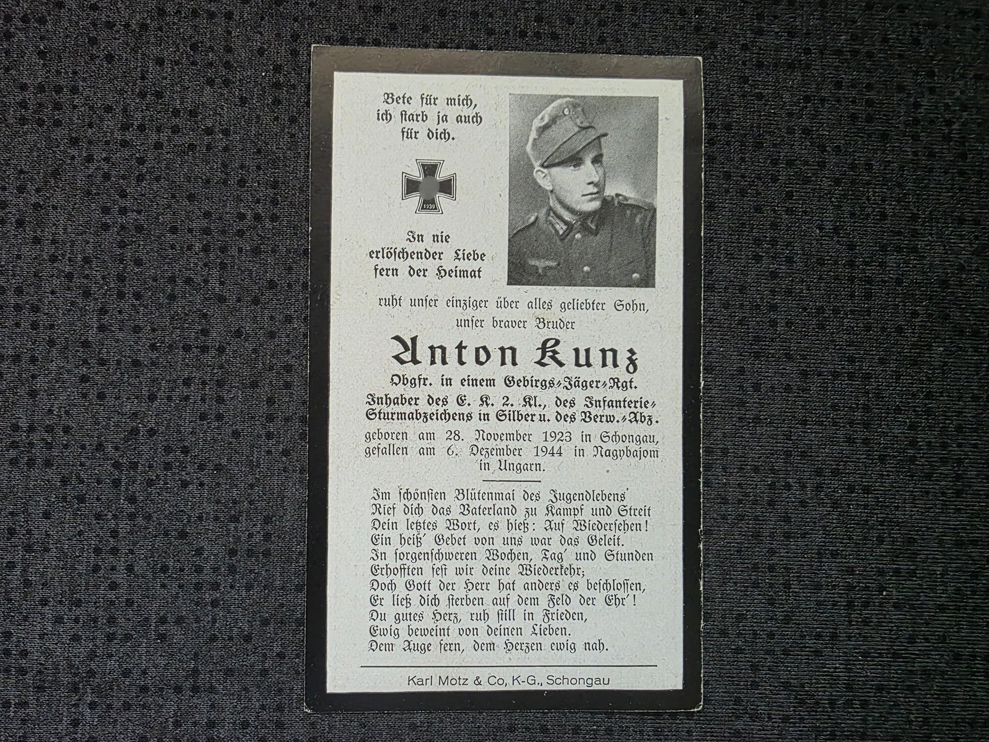 Sterbebild Obergefreiter Schongau Gebirgsjäger Regt. Nagybajom Ungarn