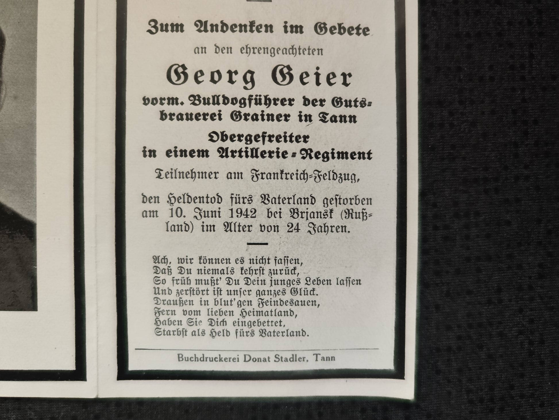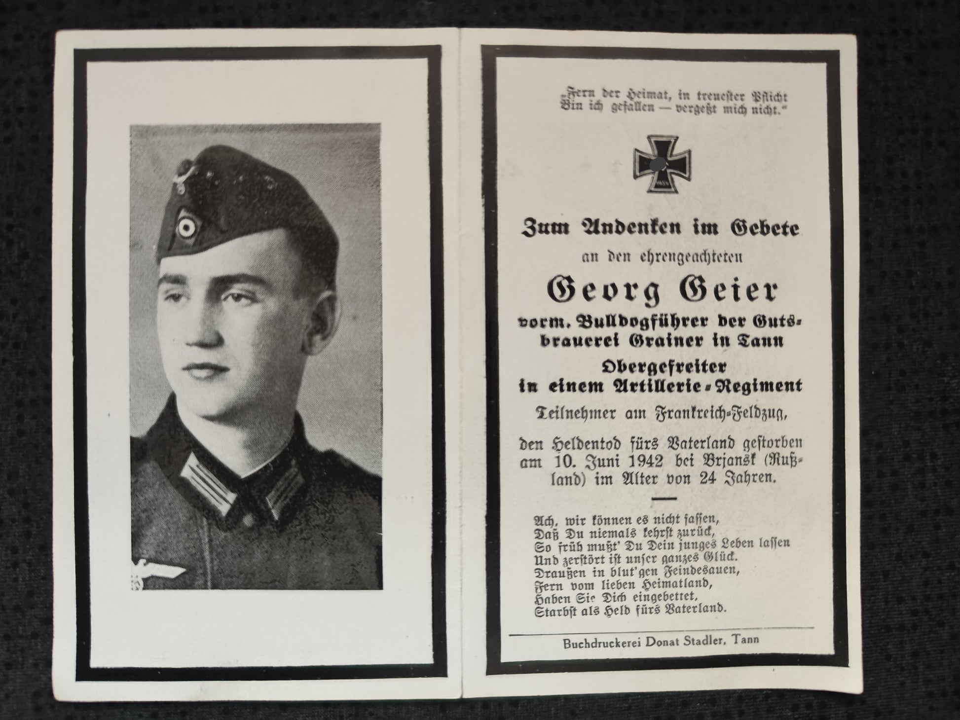 Sterbebild Obergefreiter Tann Stabsbatterie II/Pz.-Artillerie Regt. 27 Brjansk Russland