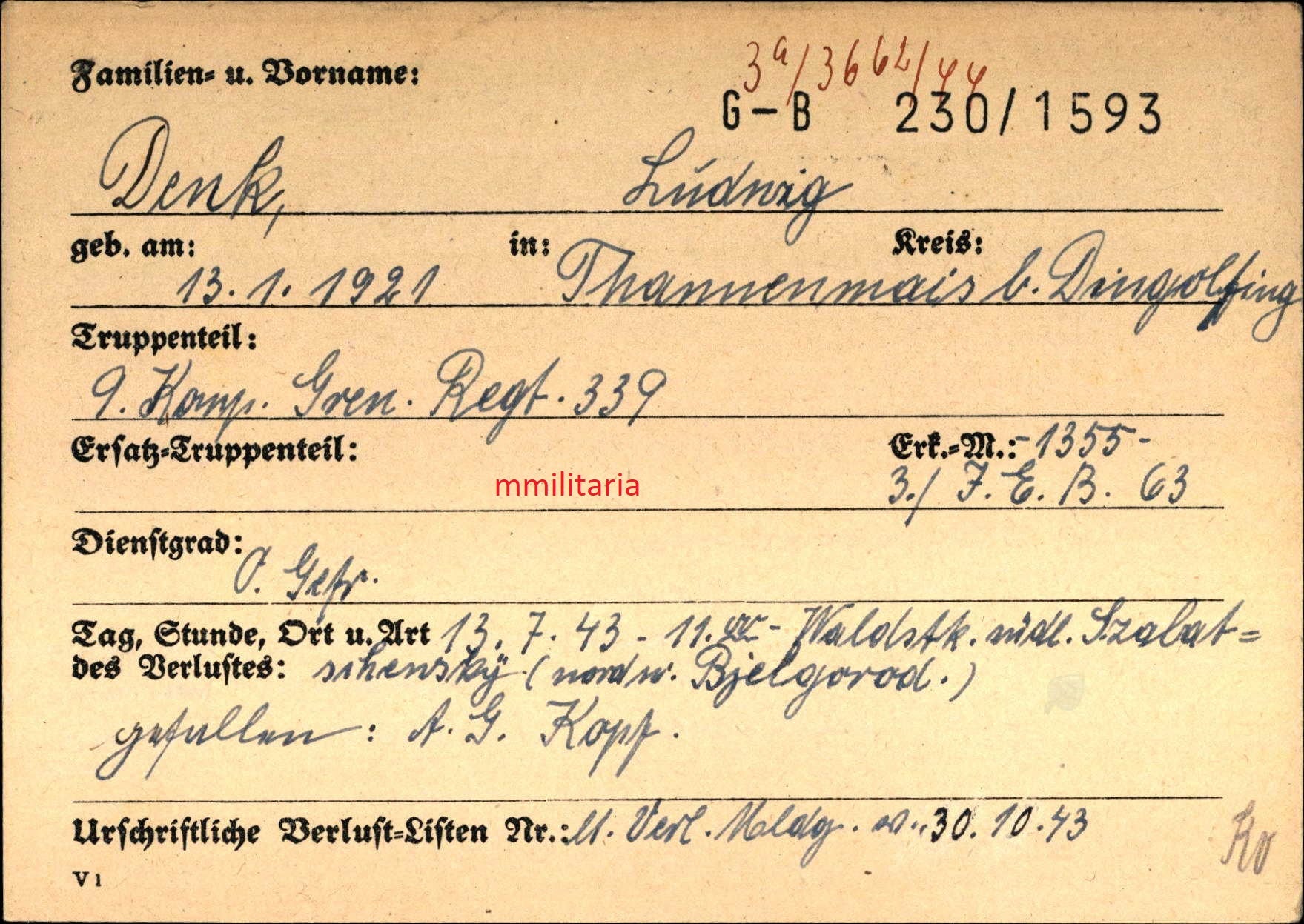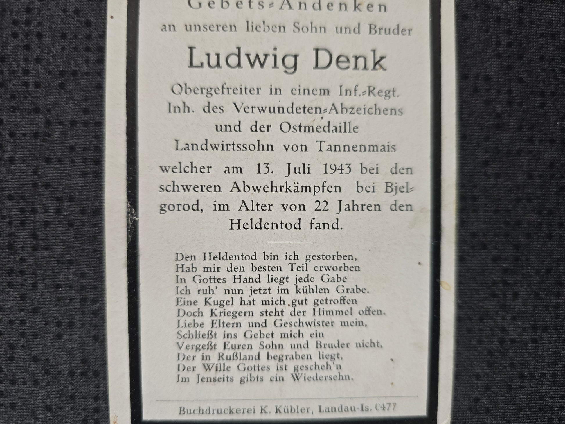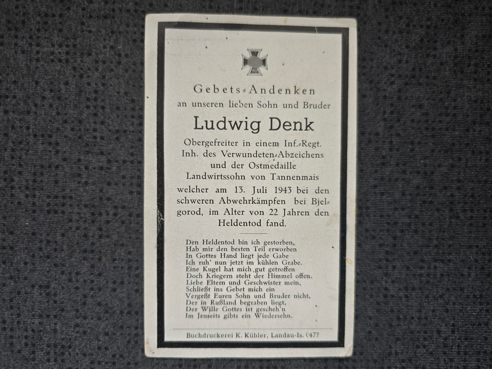 Sterbebild Obergefreiter Tannenmais 9. Komp. Gren. Regt. 339 Bjelgorod Russland