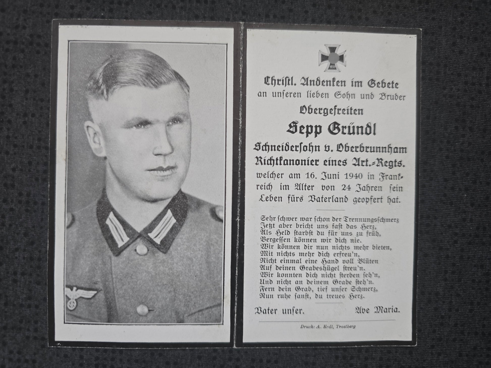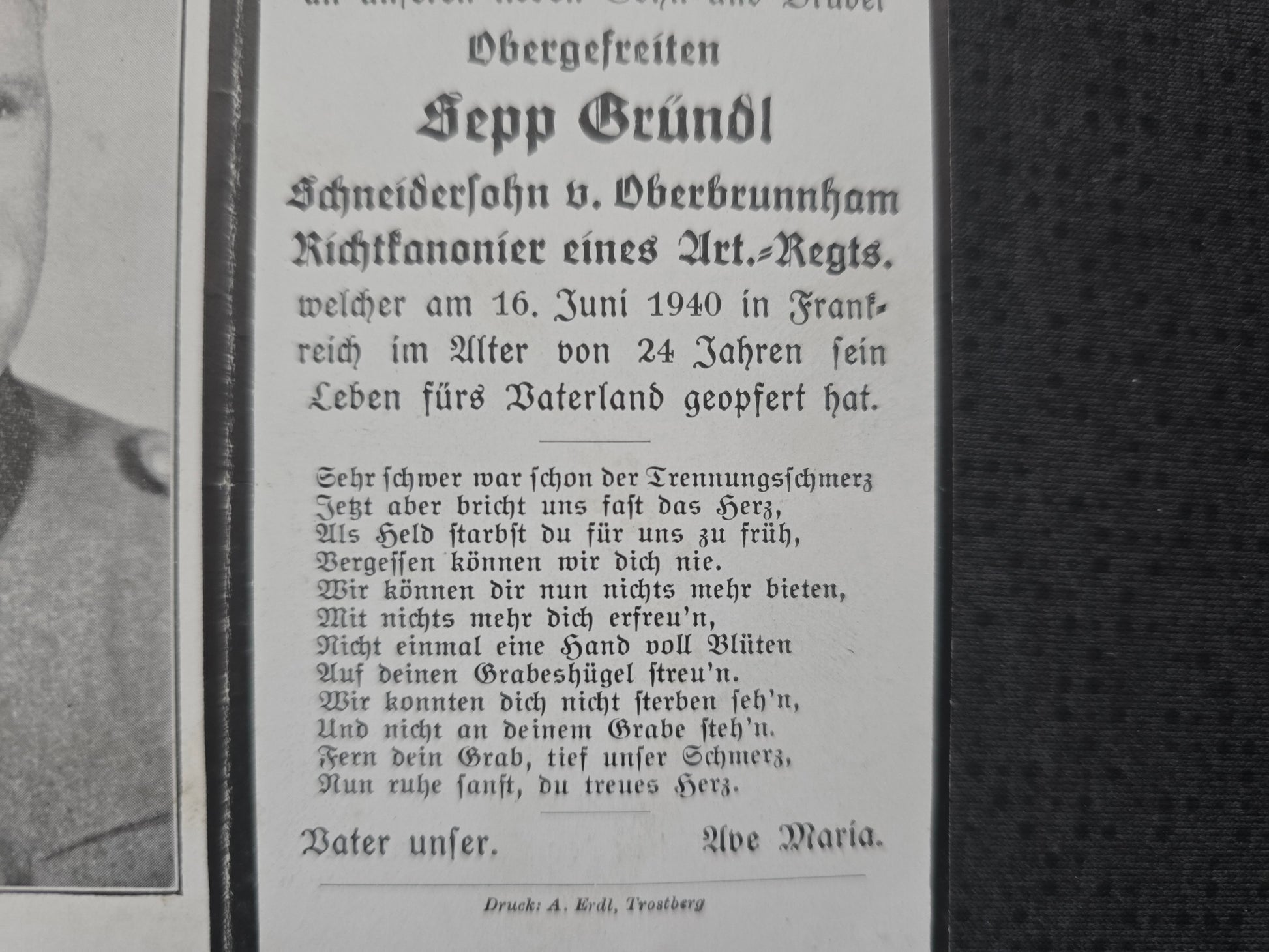 Sterbebild Obergefreiter Teising Richtkanonier 7. Batterie Art. Regt. 27 Belhomert Solers Frankreich