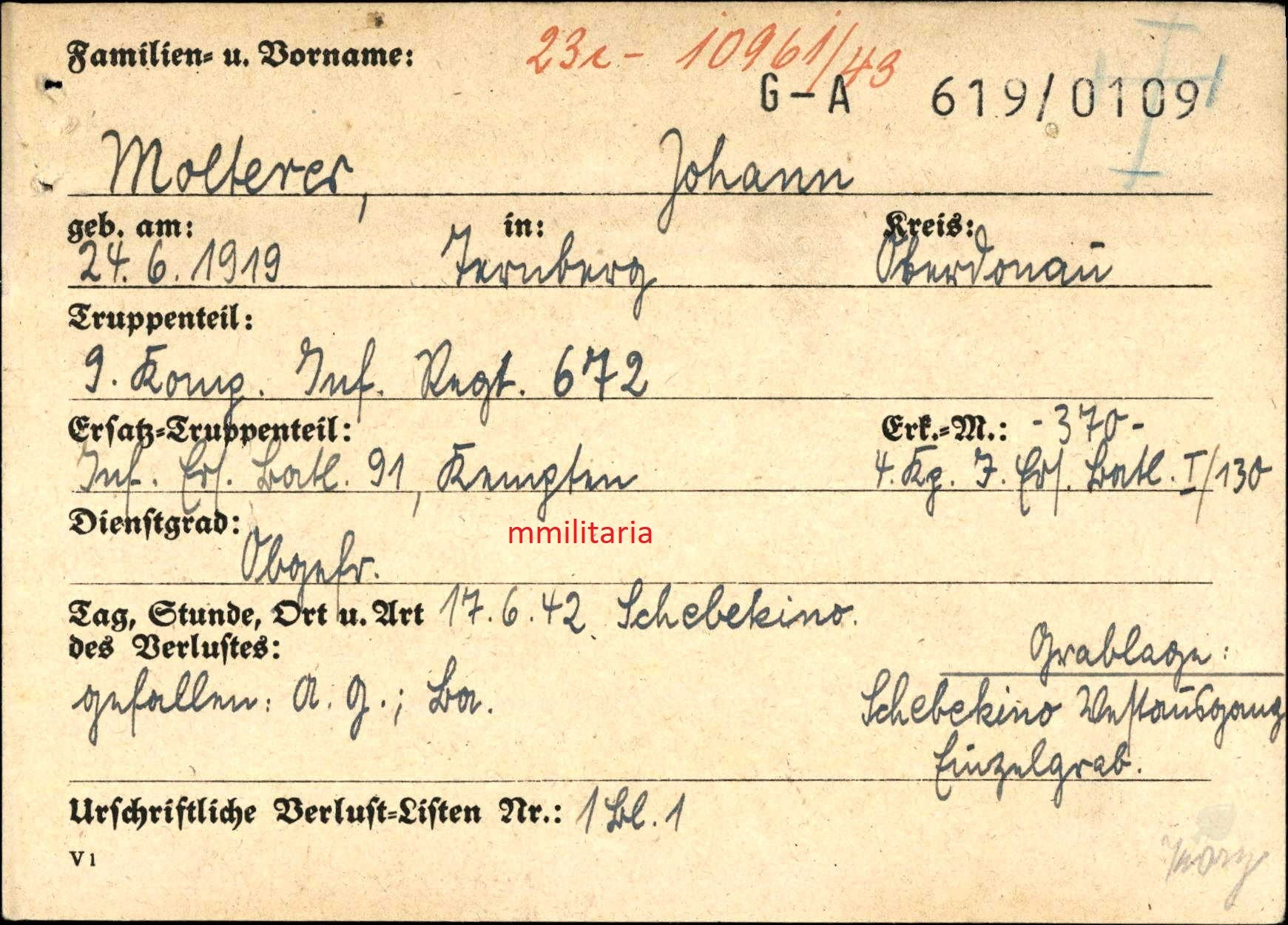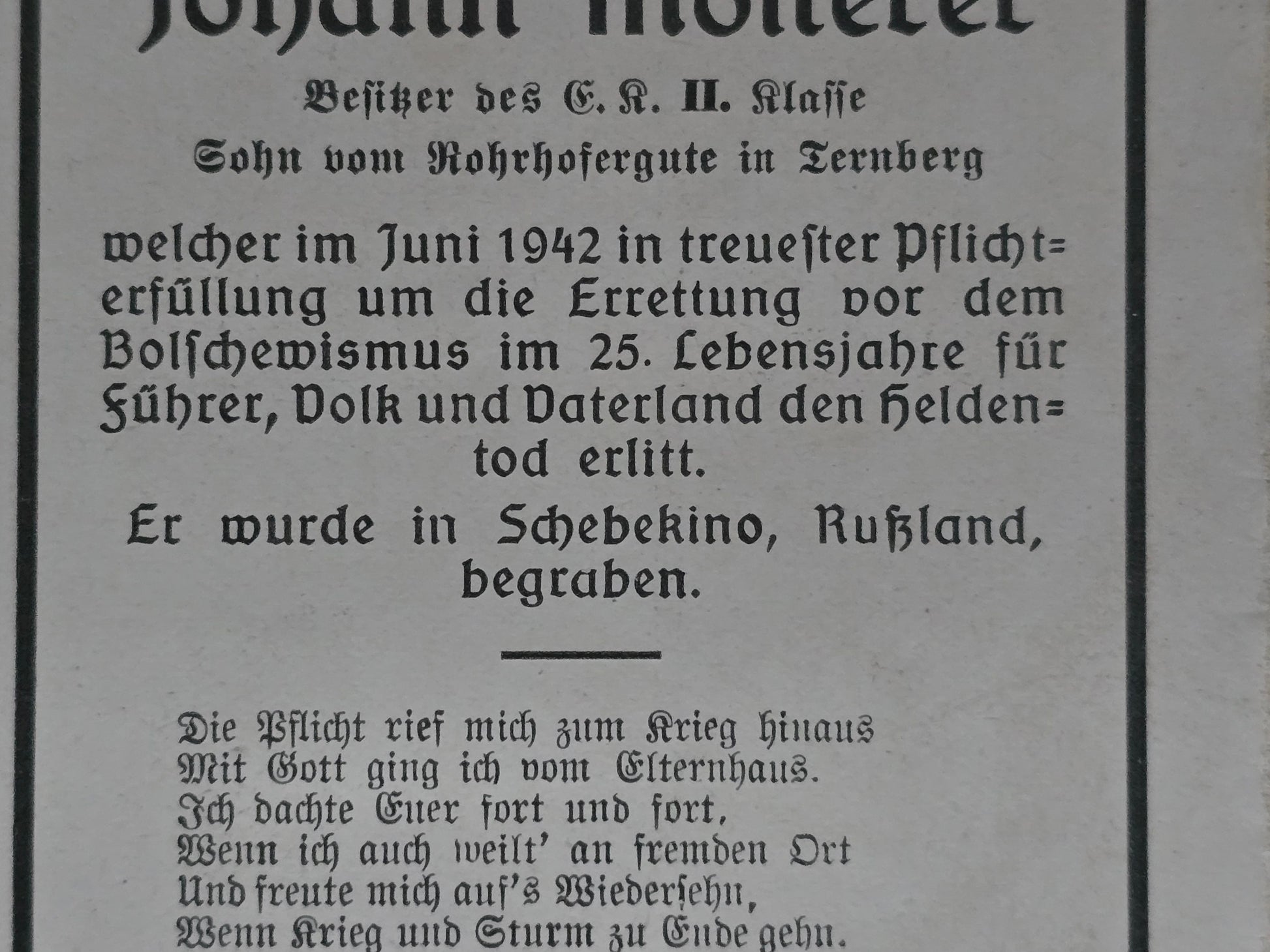 Sterbebild Obergefreiter Ternberg 9. Komp. Inf. Regt. 672 EK II Schebekino Russland