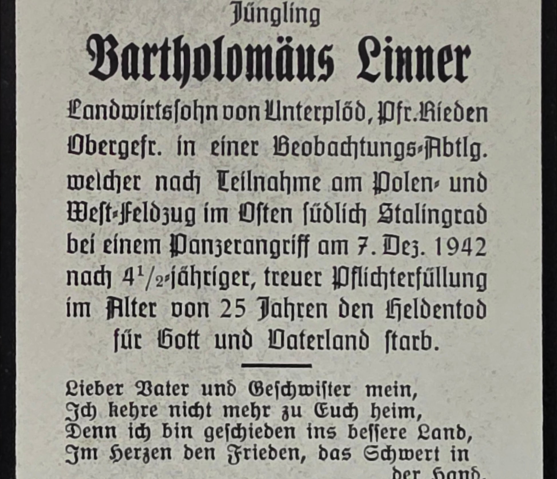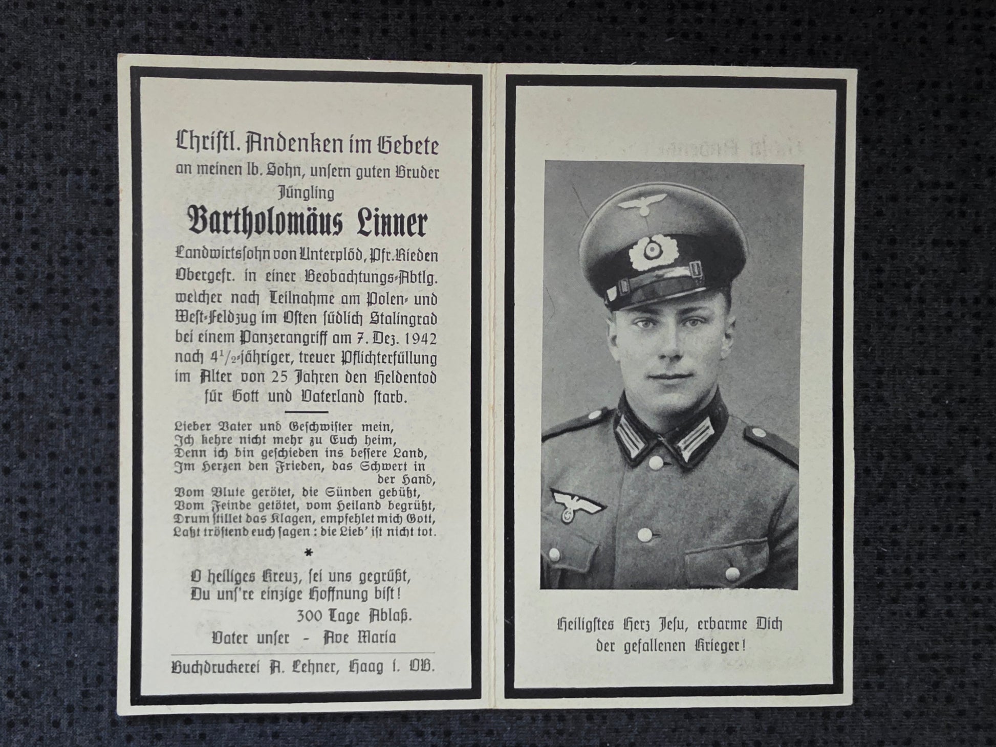 Sterbebild Obergefreiter Unterplöd 2. Leichte Beob. Abt. 7 Panzerangriff Stalingrad Russland