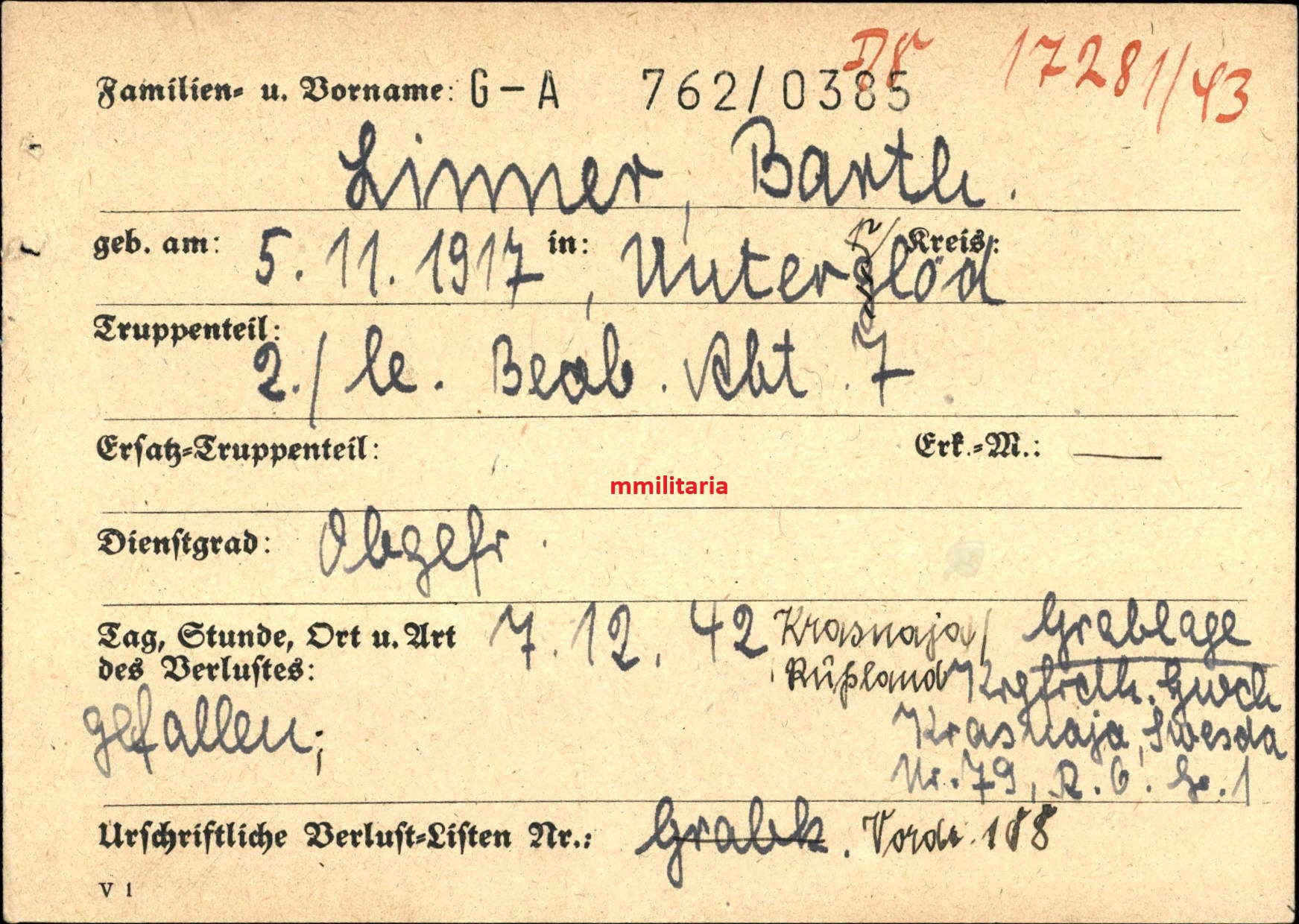 Gefallen am 07.12.1942 bei Krasnaja Swesda (Russland)