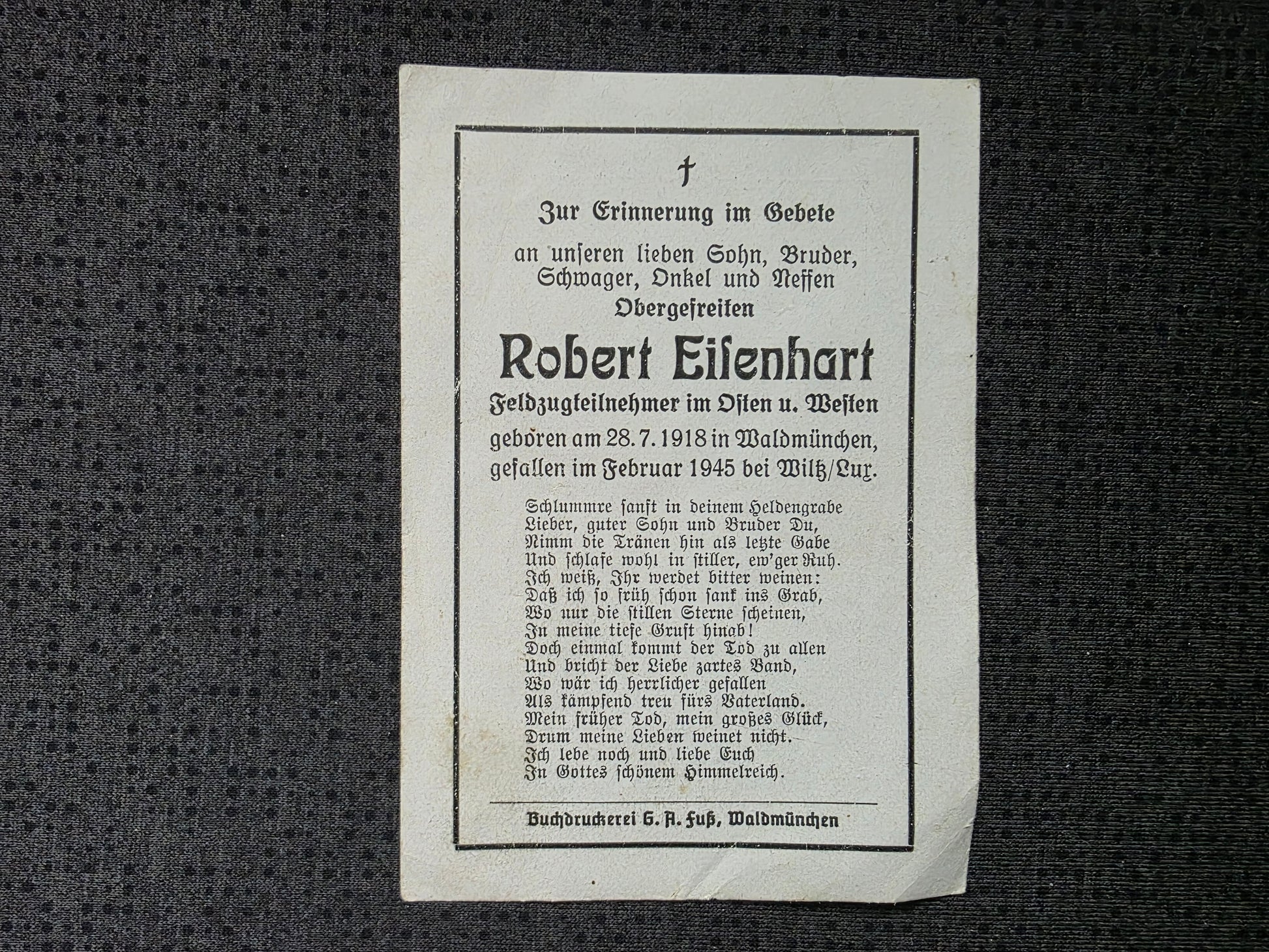 Sterbebild Obergefreiter Waldmünchen Endkampf Wiltz Luxemburg Recogne-Bastogne Belgien