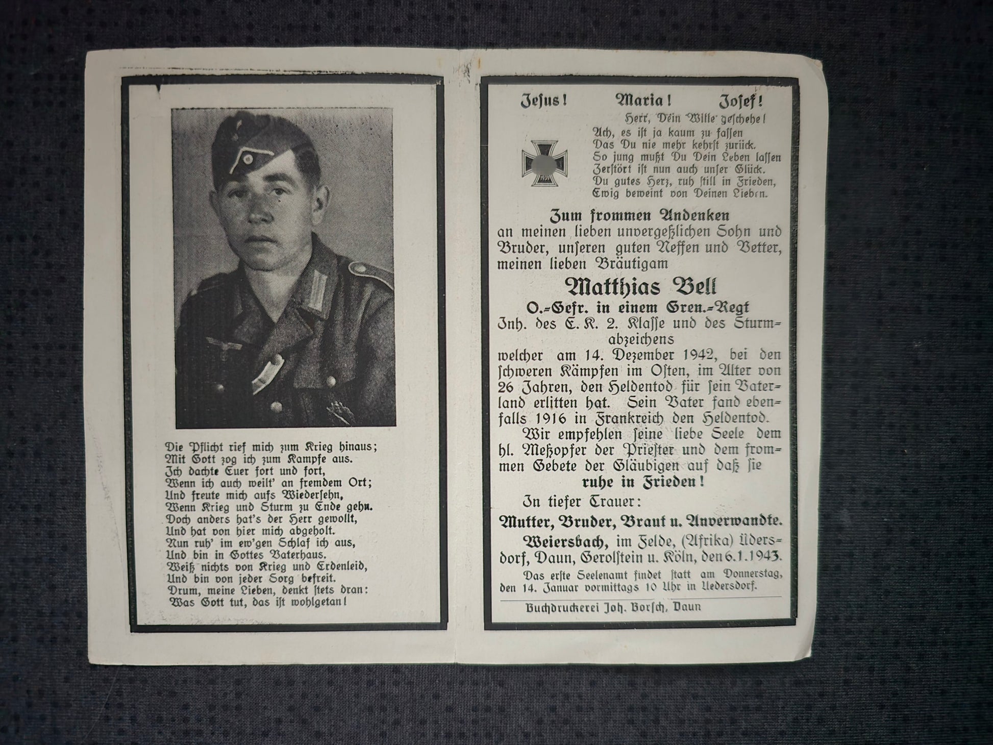 Sterbebild Obergefreiter Weiersbach 3. Komp. Gren. Regt. 321 Bojarniki Russland