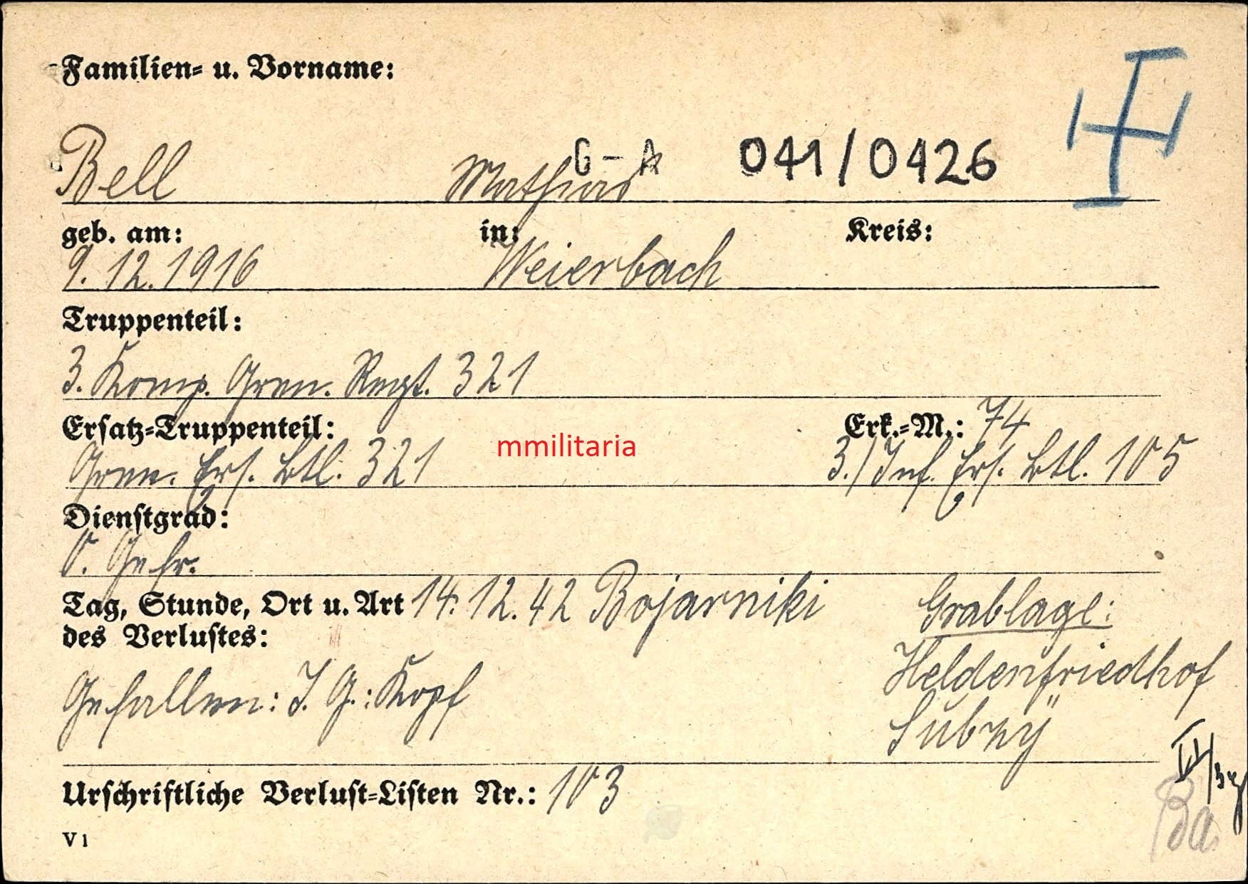 Gefallen am 14.12.1942 bei Bojarniki (Russland)