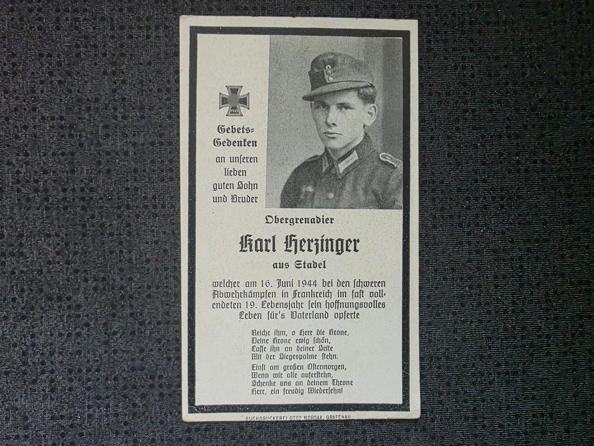 Sterbebild Obergrenadier Gehersberg Normandie Cherbourg-Peninsula Orglandes Frankreich