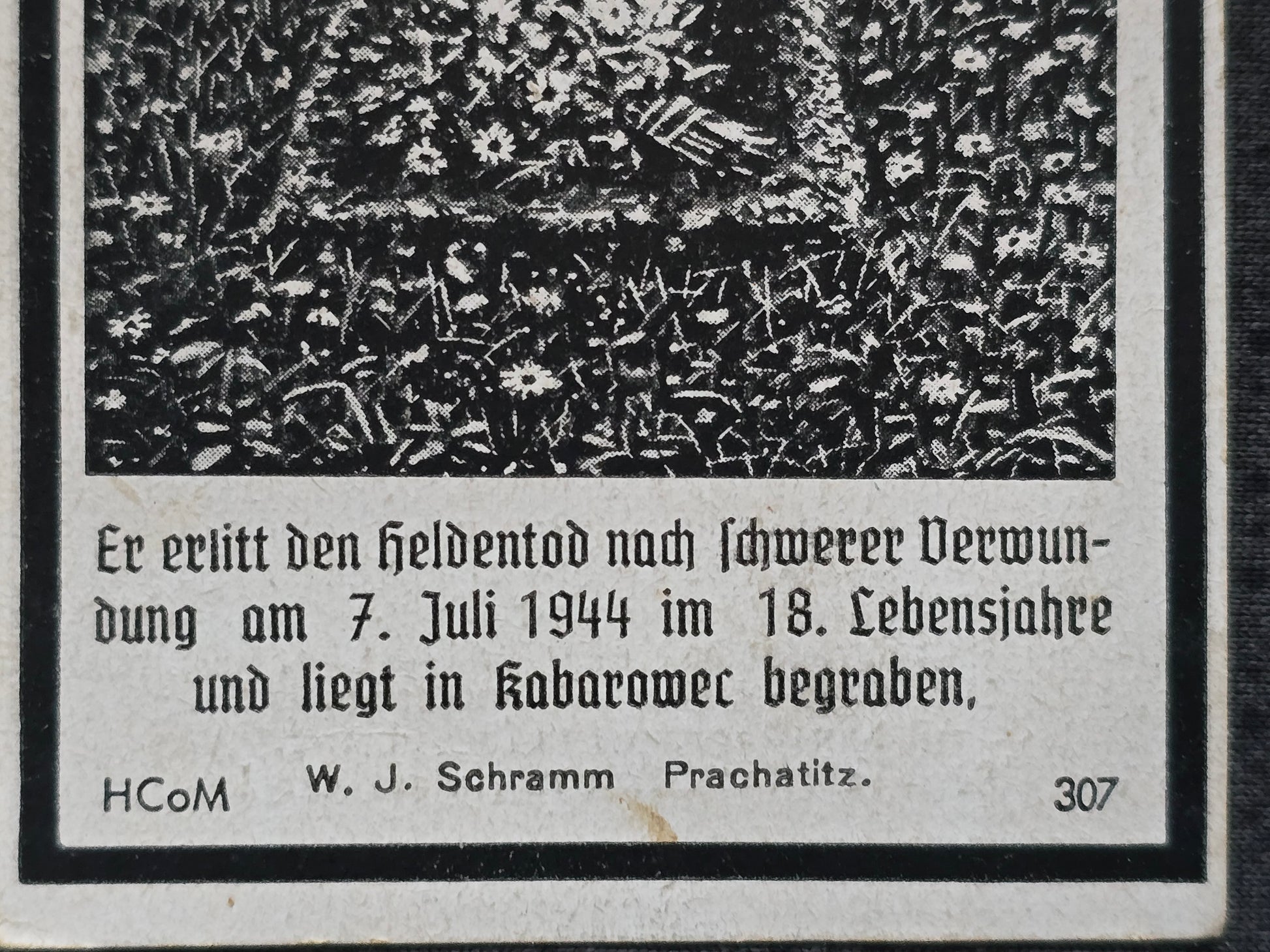 Sterbebild Obergrenadier Zaborsch San.Kp.2/357 H.V.Pl. Kabarowce Potelytsch Ukraine