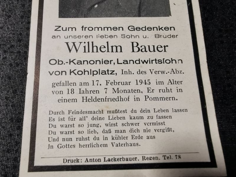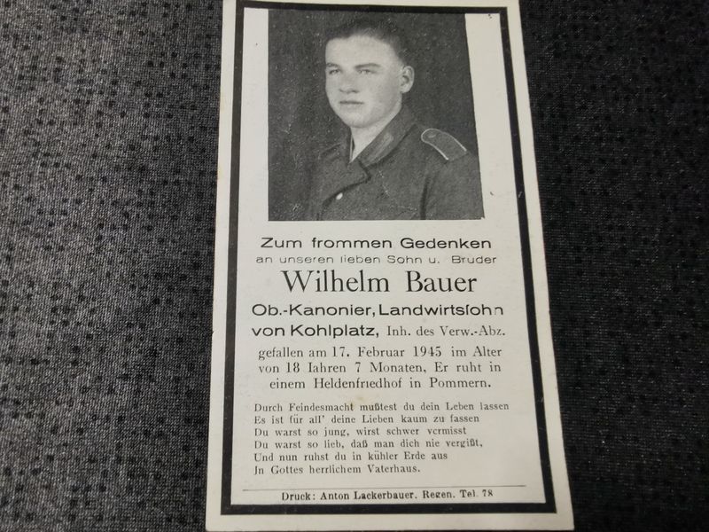 Sterbebild Oberkanonier Artillerie Regt. Endkampf 18 Jahre Glambeck Pommern Suliborz Polen