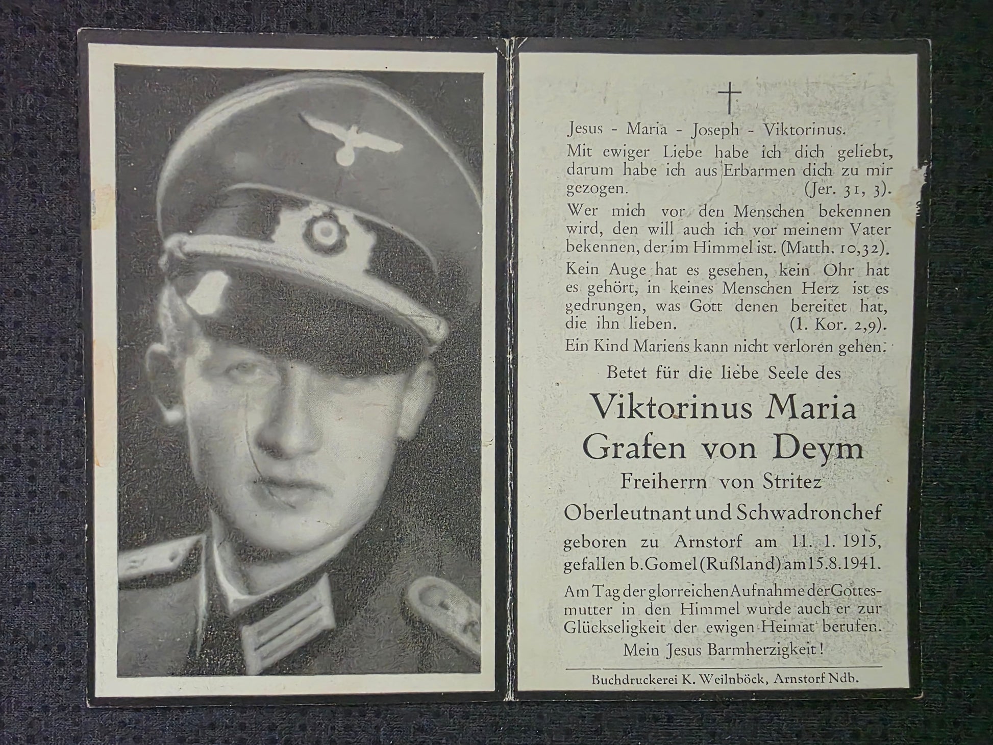 Sterbebild Oberleutnant Arnstorf Schwadronchef 4. (MG) Schweres Reiter Regt. 2 Ossobin Weissrussland
