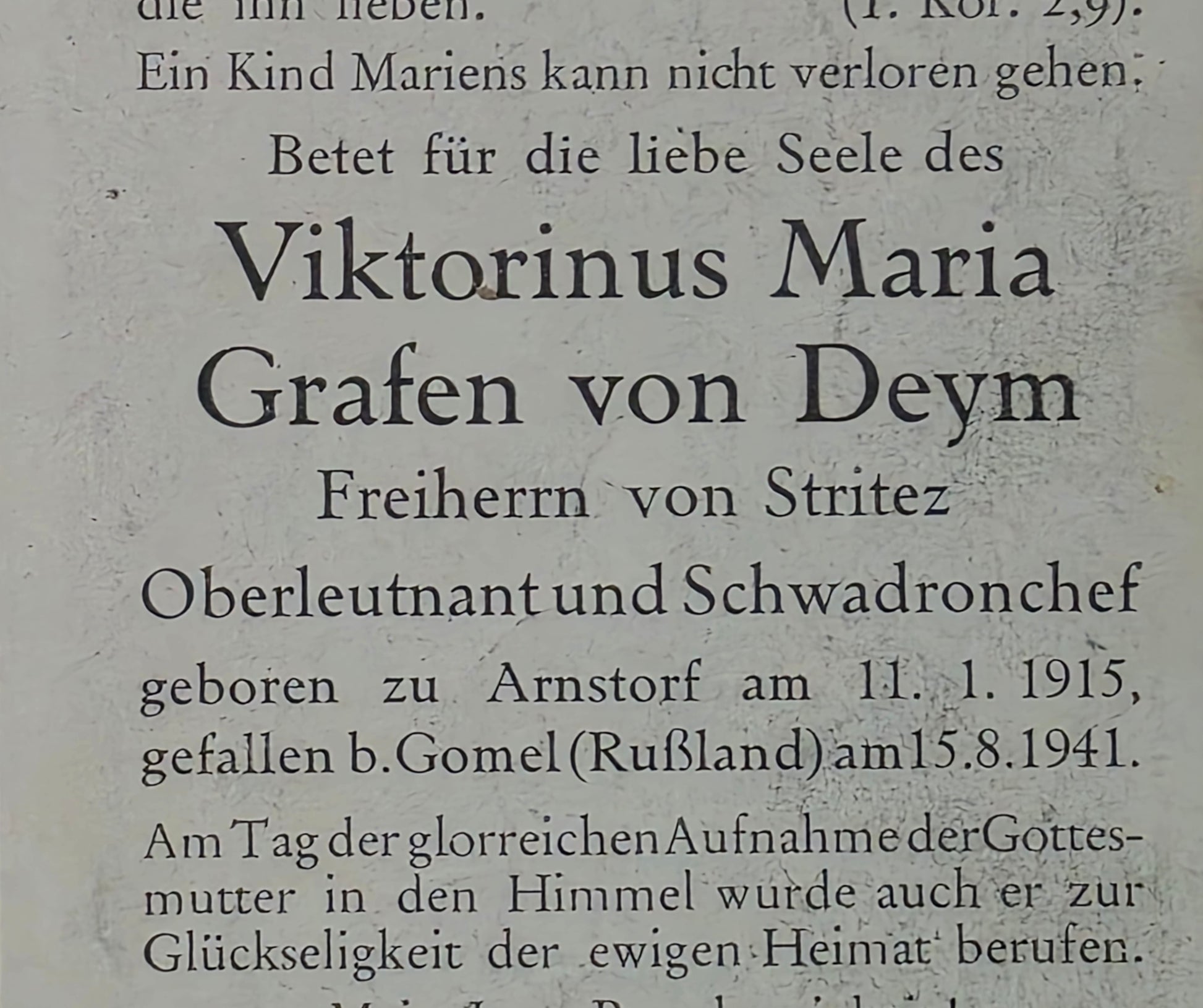 V. M. Grafen von Deym