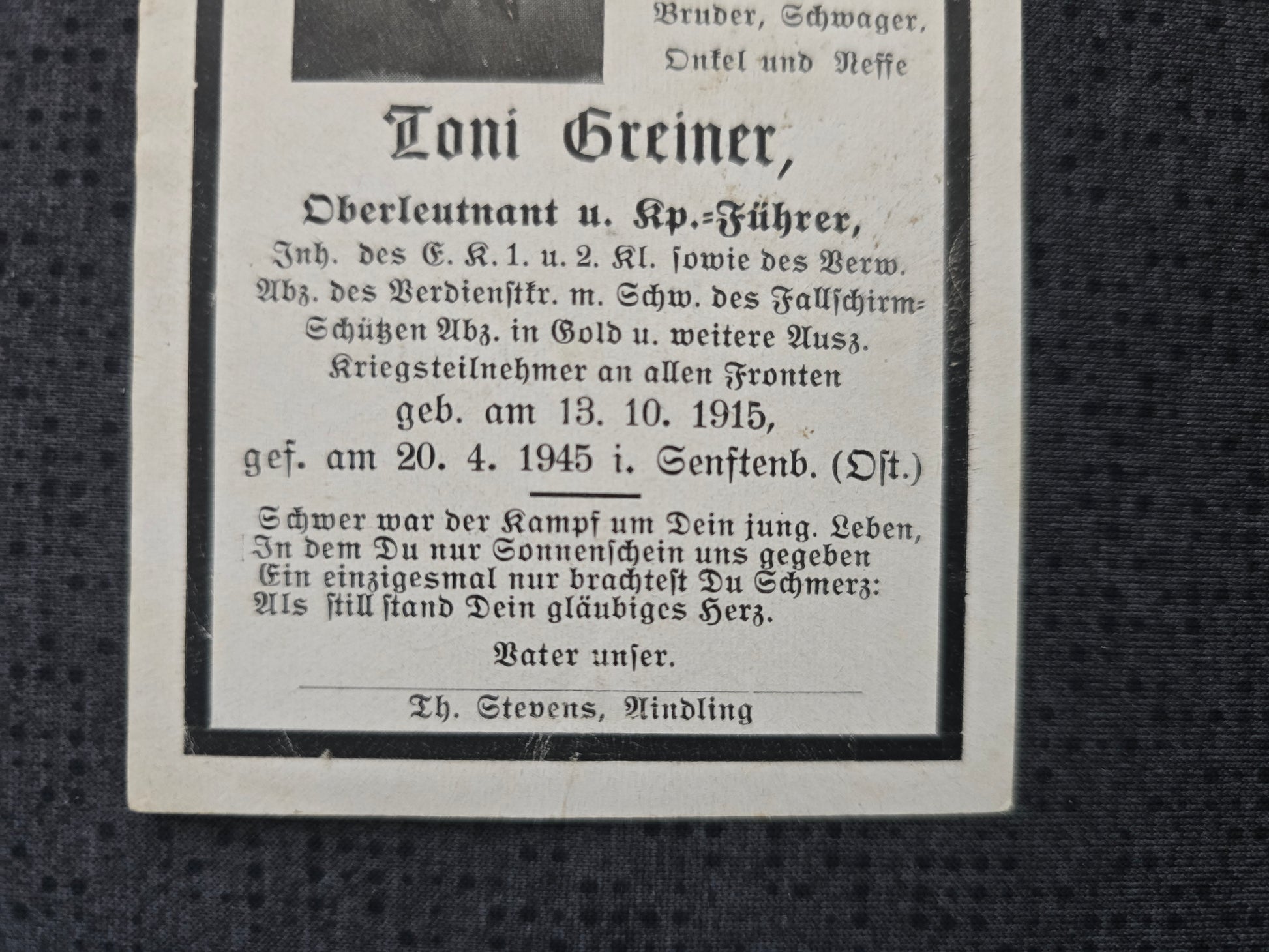 Sterbebild Oberleutnant Fallschirmjäger Regt. EK I&II Fallschirmschützen Abz. Gold Endkampf Senftenberg