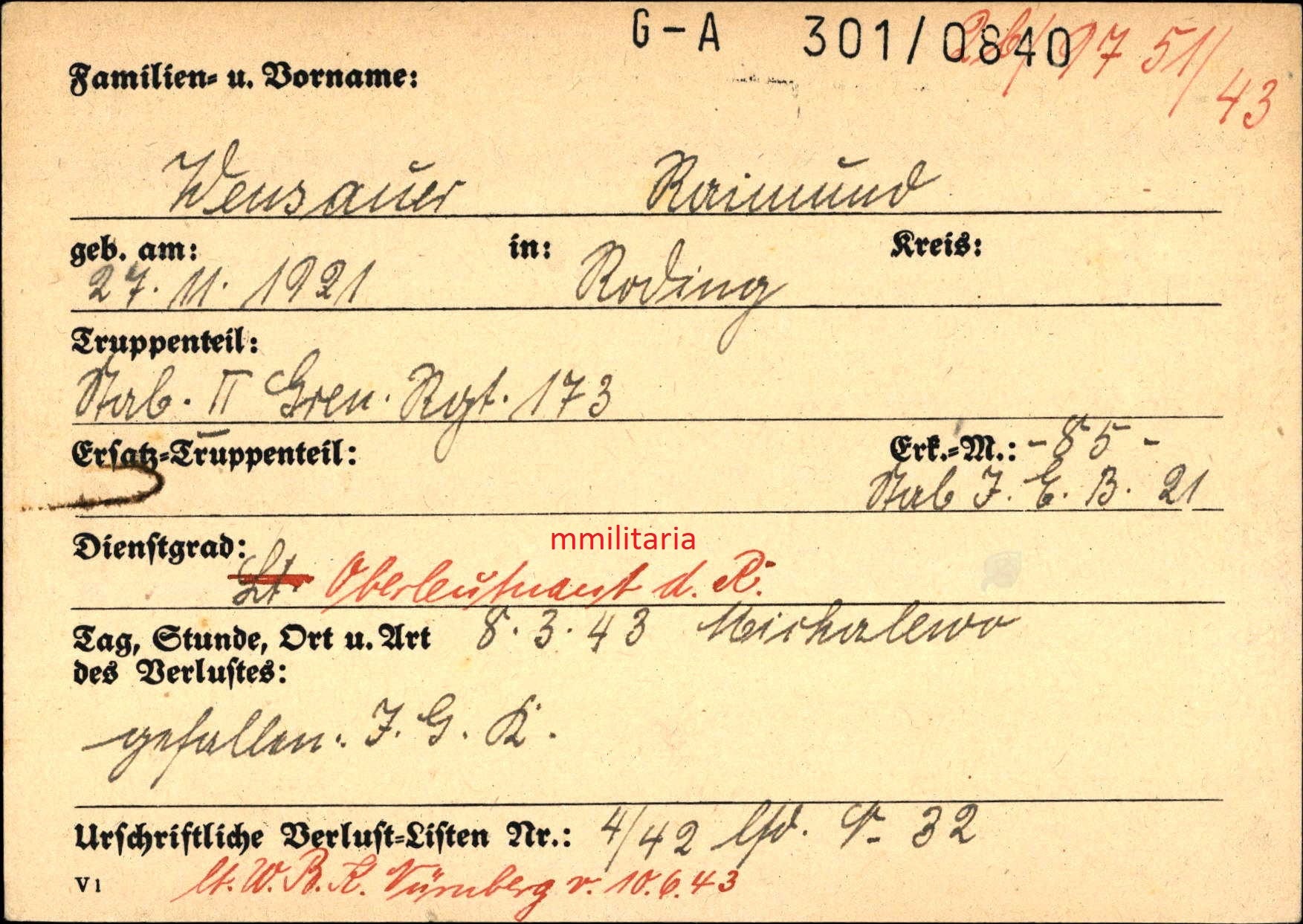 Sterbebild Oberleutnant Roding Stab II Gren. Regt. 173 Michalewo Russland