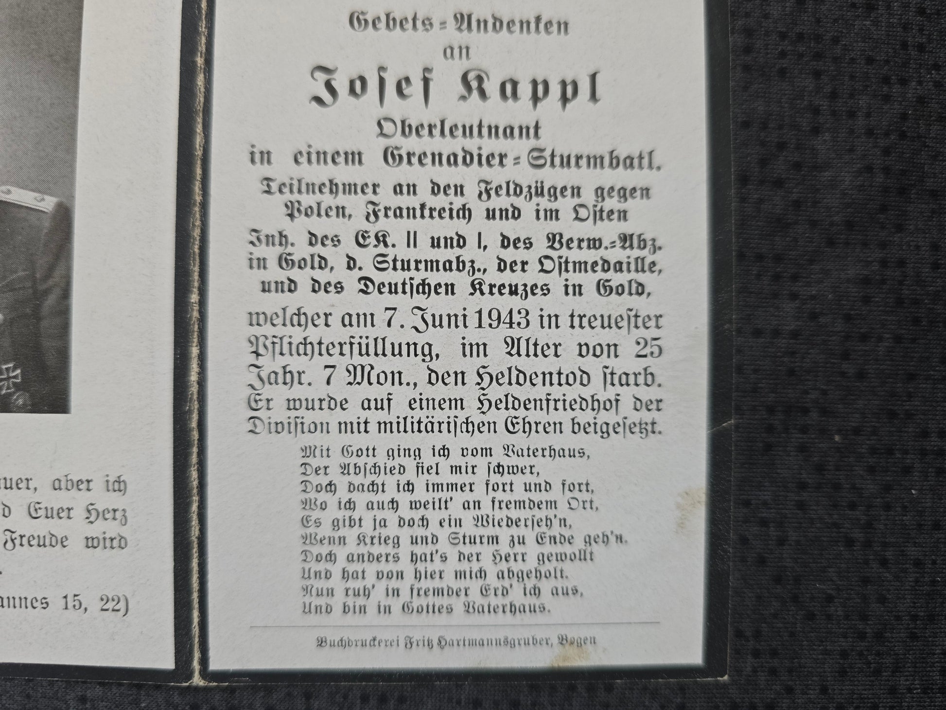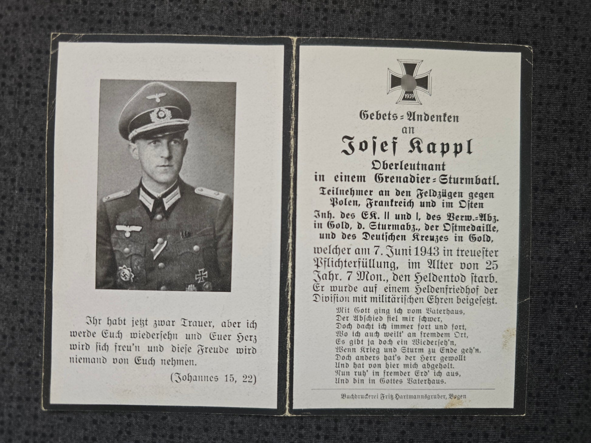 Sterbebild Oberleutnant Welchenberg 12. Komp. Gren. Regt. 216 EK I&II DKiG Archangelskoje Kursk Russland
