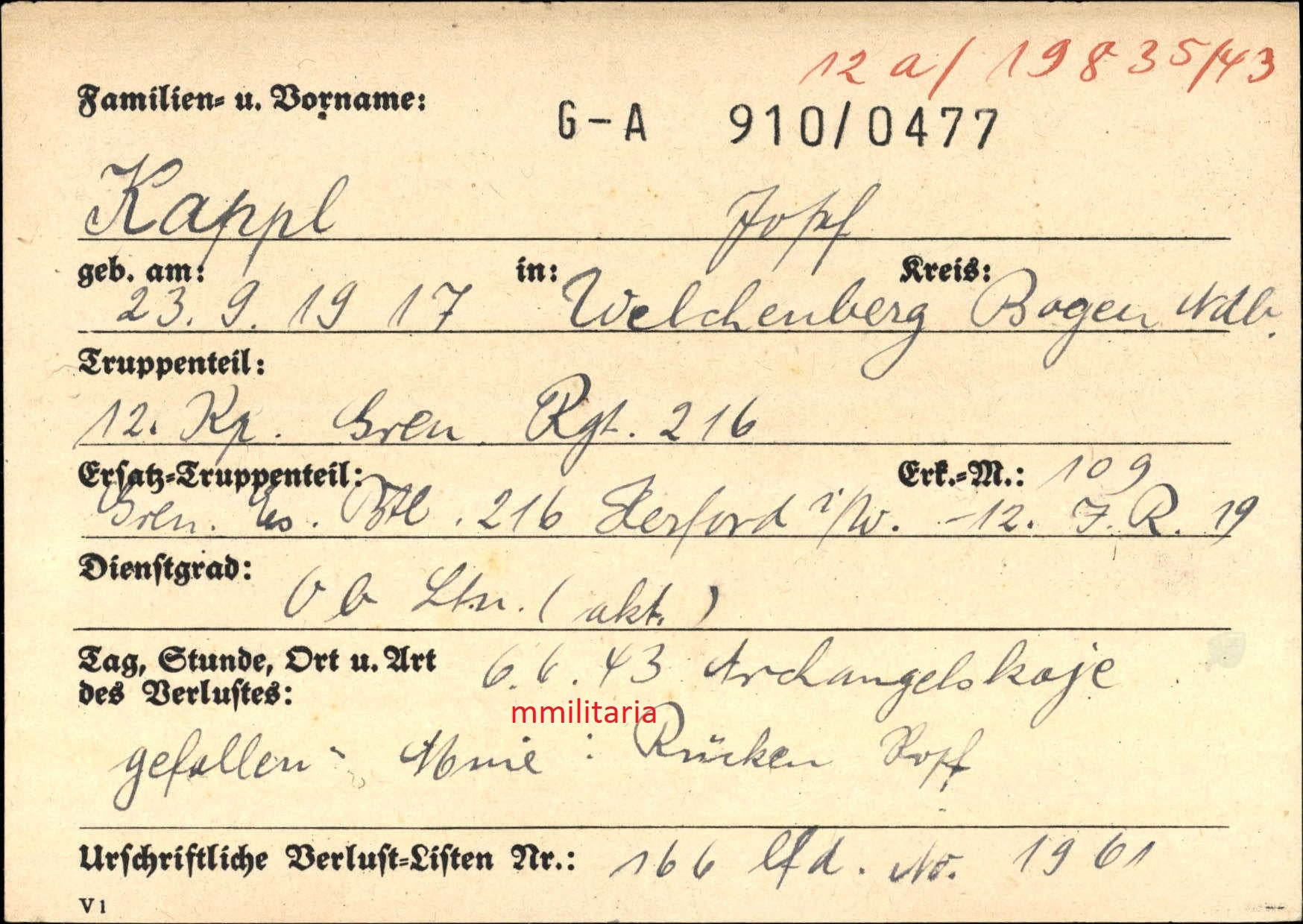 Gefallen am 07.06.1943 in Archangelskoje (Russland)