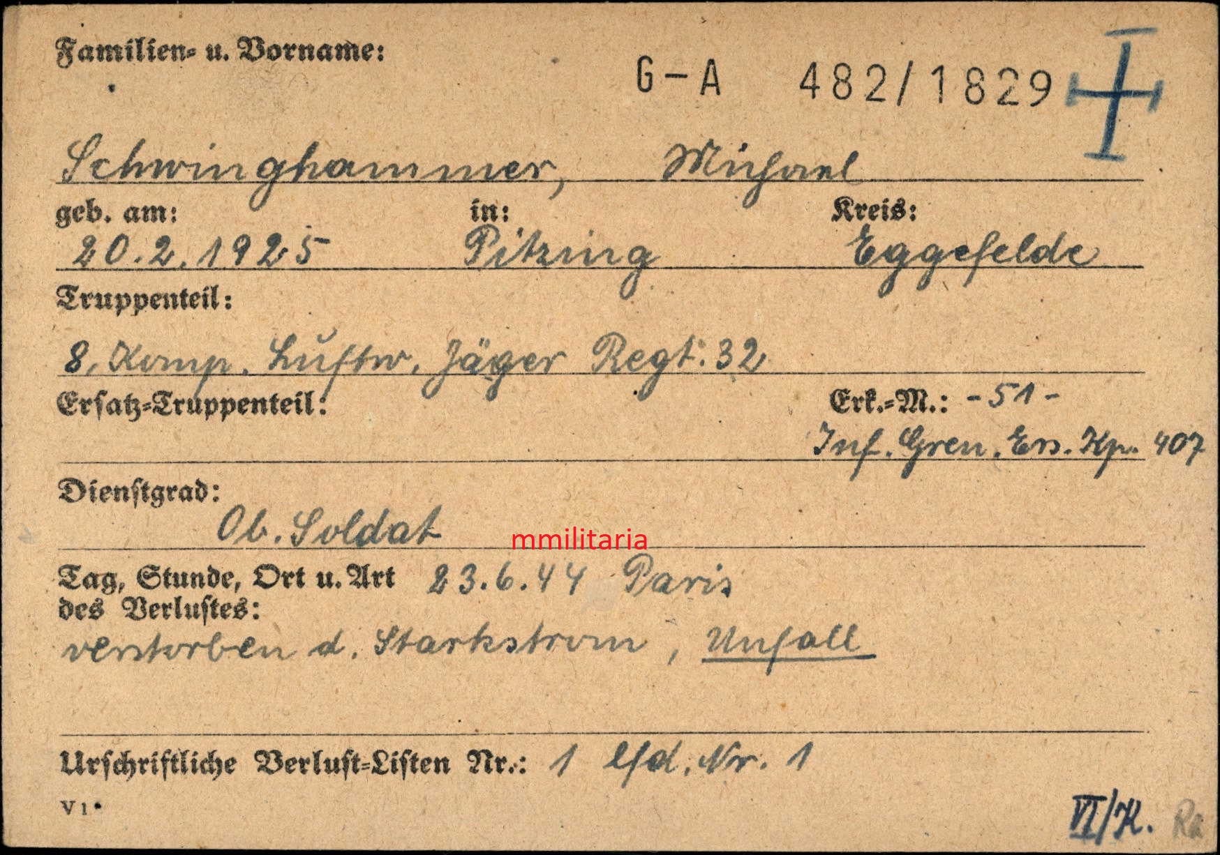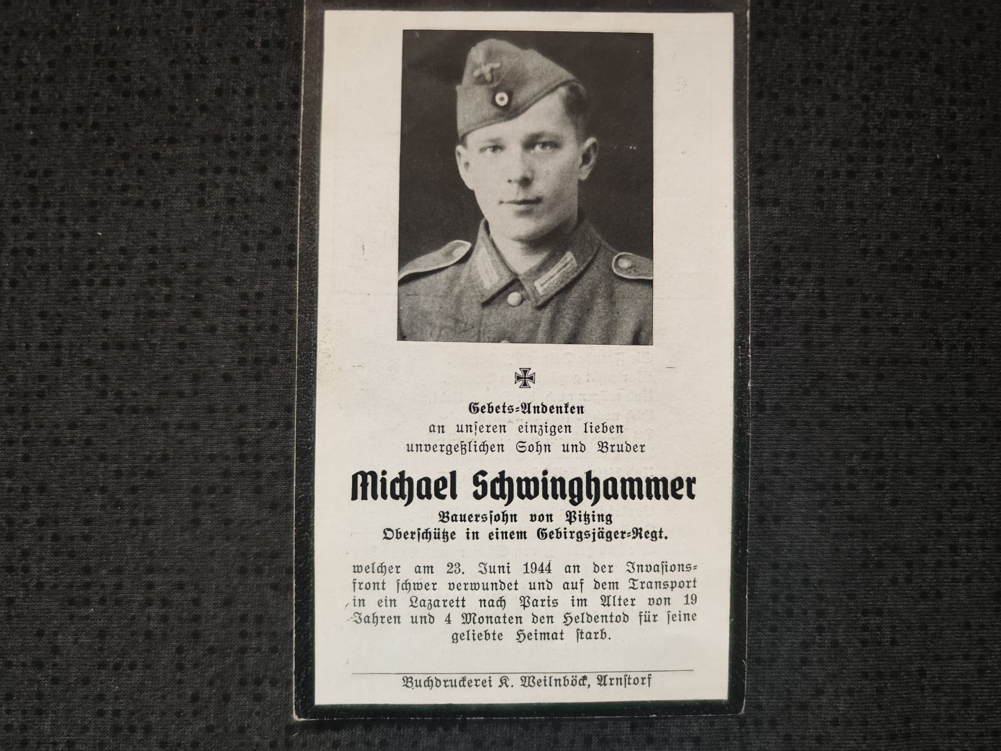 Sterbebild Oberschütze 8. Komp. LW Jäger Regt. 32 Invasionsfront Champigny-St.André Frankreich