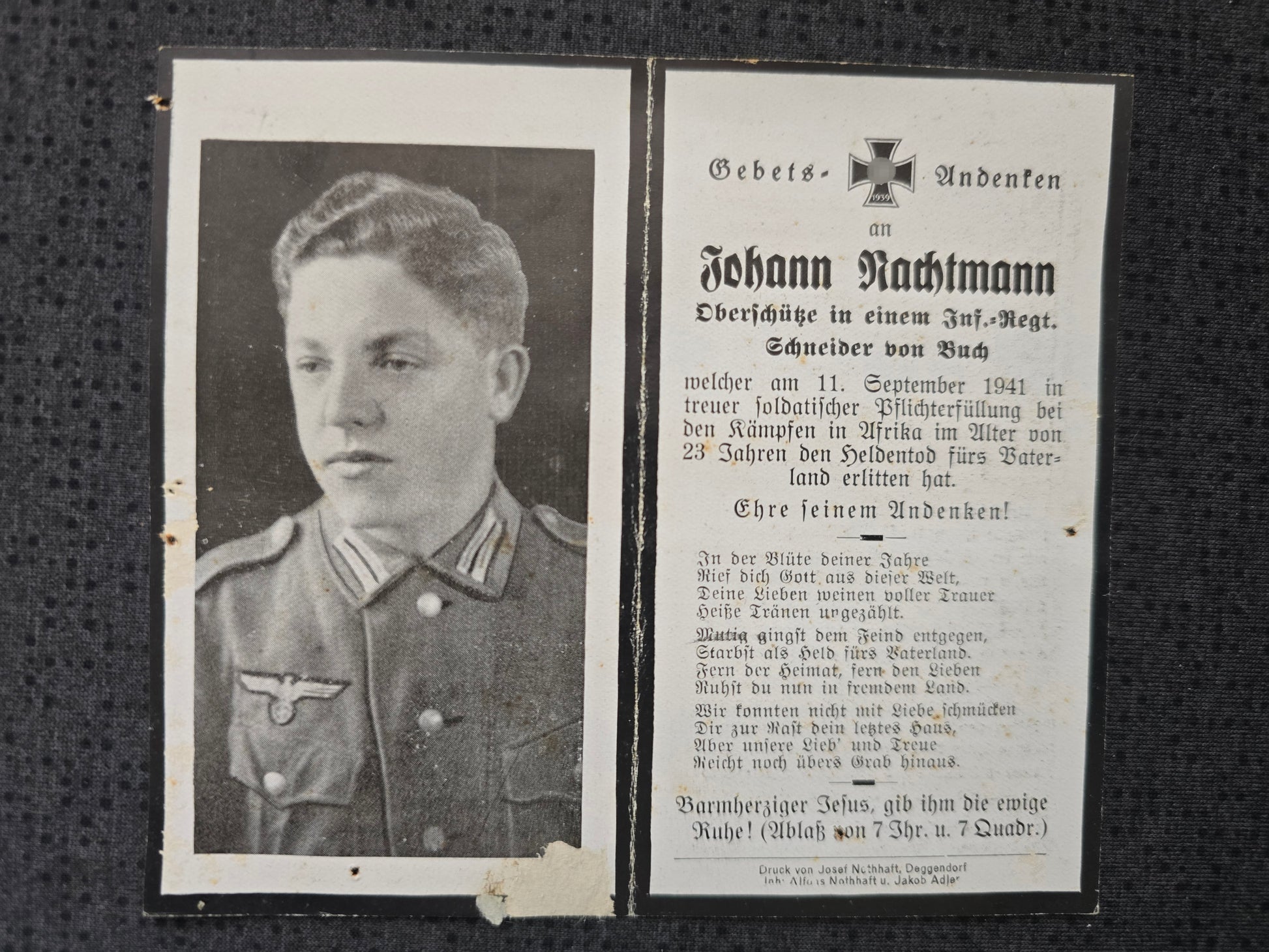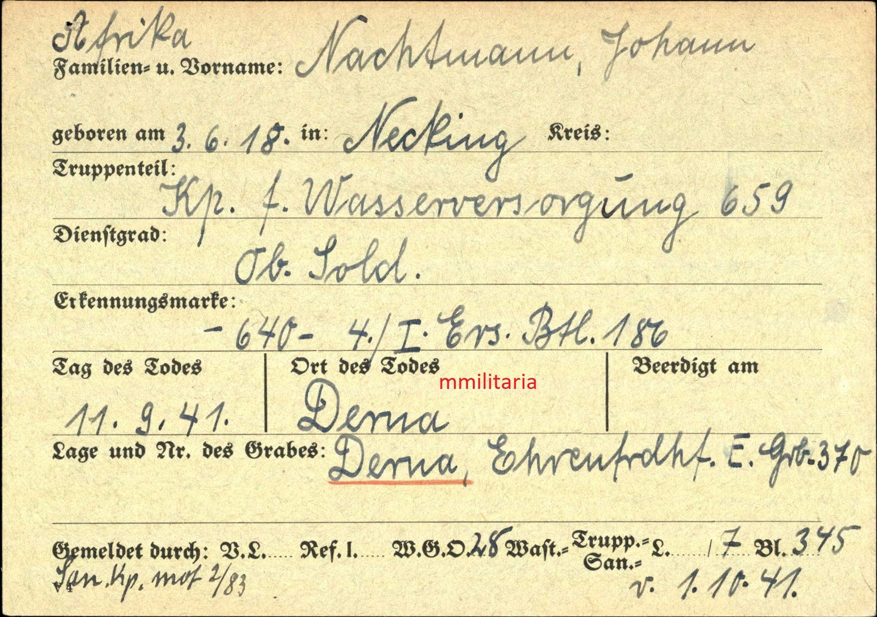 Sterbebild Oberschütze Deggendorf Komp. für Wasserversorgung 659 Derna Tobruk Libyen Afrika