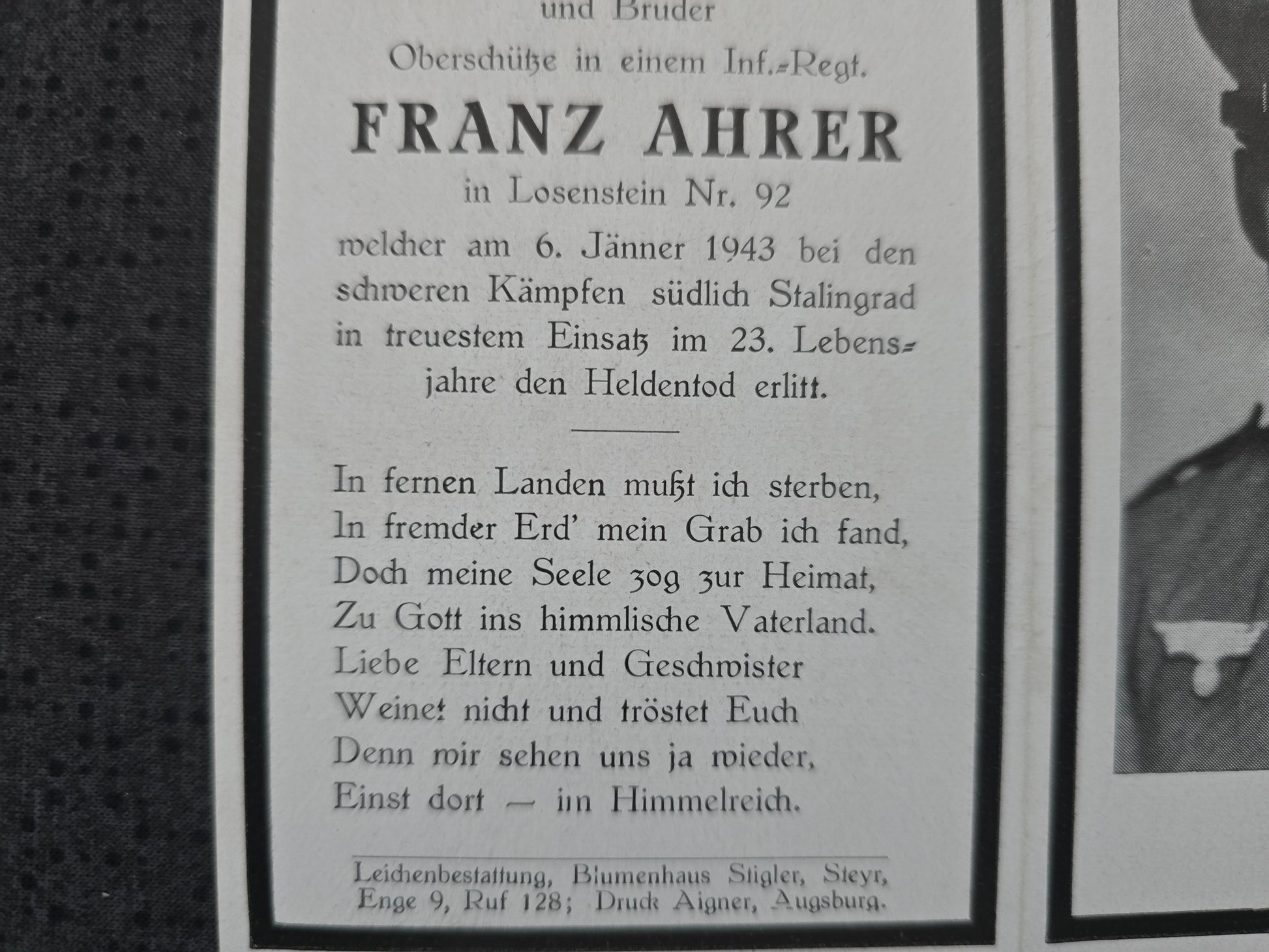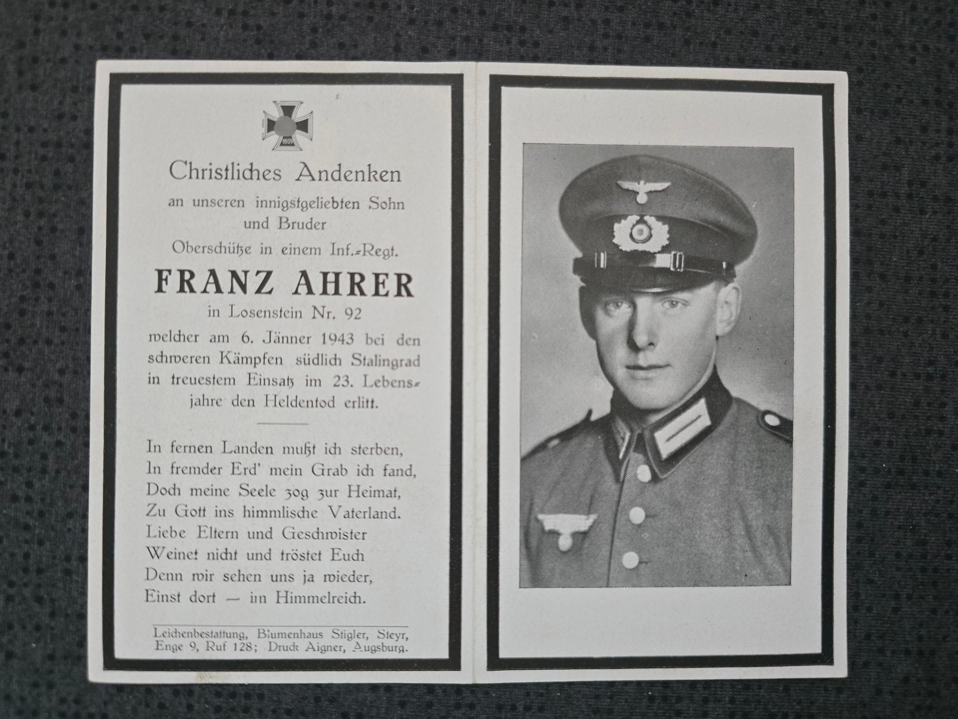 Sterbebild Oberschütze Lesenstein Inf. Regt. schwere Kämpfe Stalingrad Russland