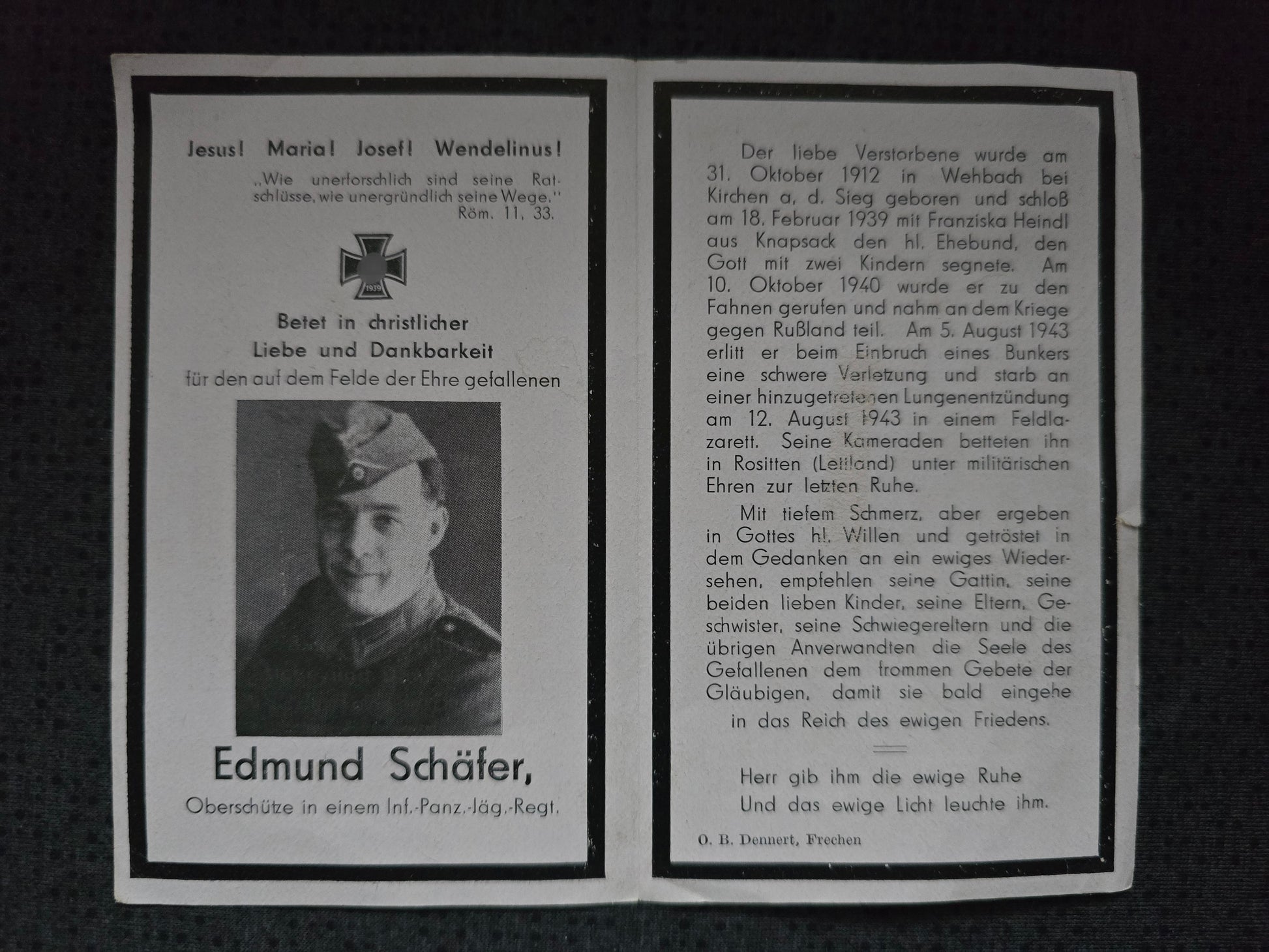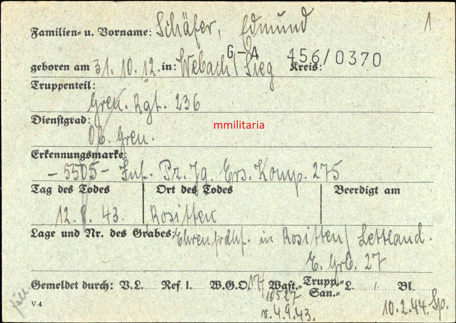 Sterbebild Oberschütze Wehbach Gren. Regt. 236 Feldl. 3/572 Rositten Lettland