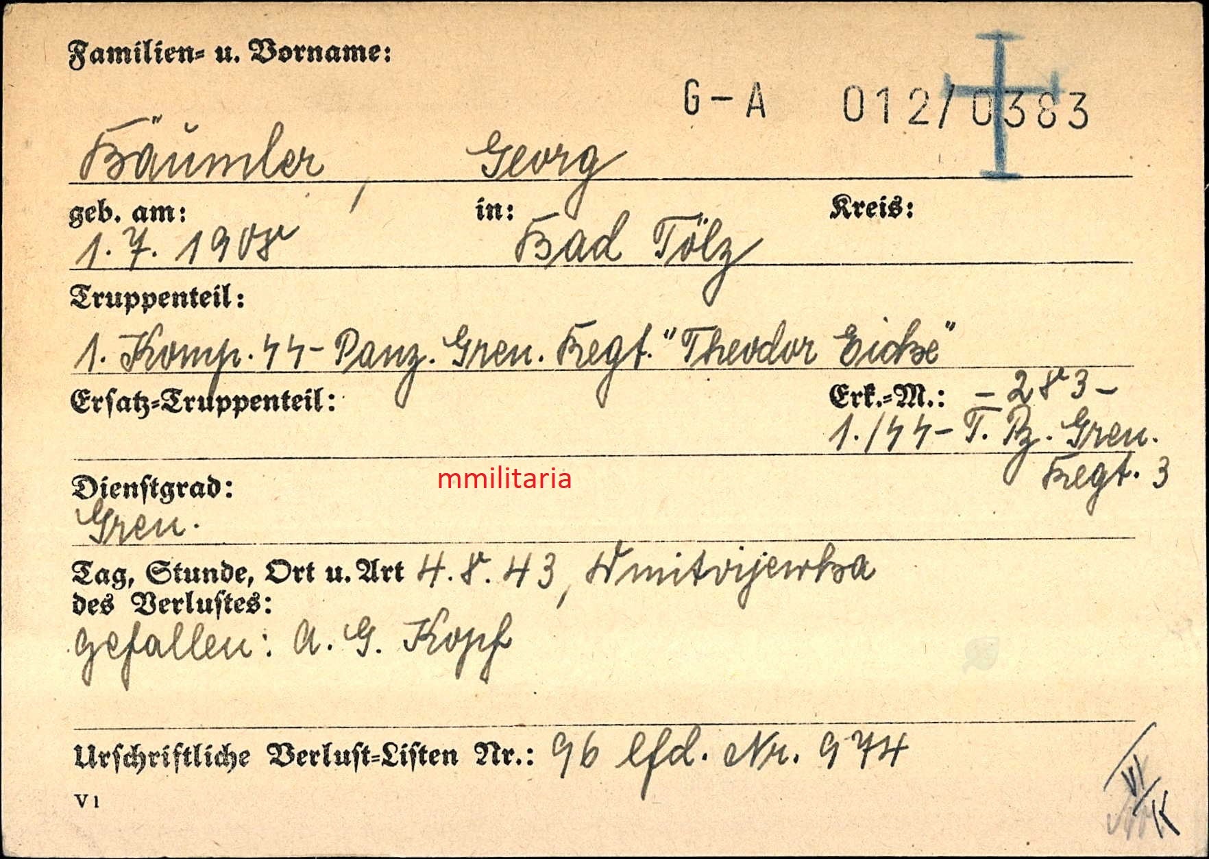 Sterbebild Panzer-Grenadier Bad Tölz 1. Komp. SS-Pz.-Gren. Regt. "Theodor Eicke" Dimitrijewska Ukraine