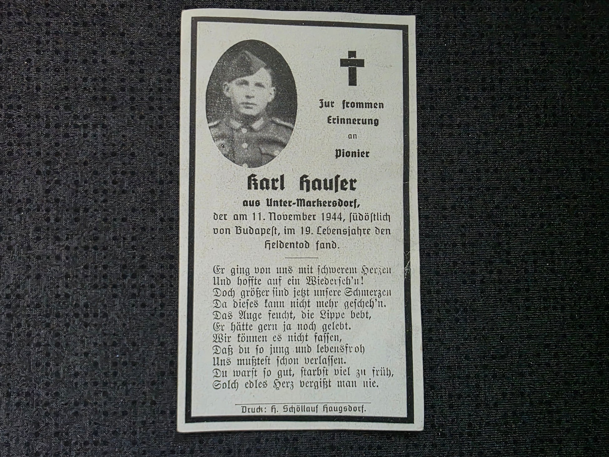 Sterbebild Pionier Untermarkersdorf Monor Budapest Budaörs Ungarn