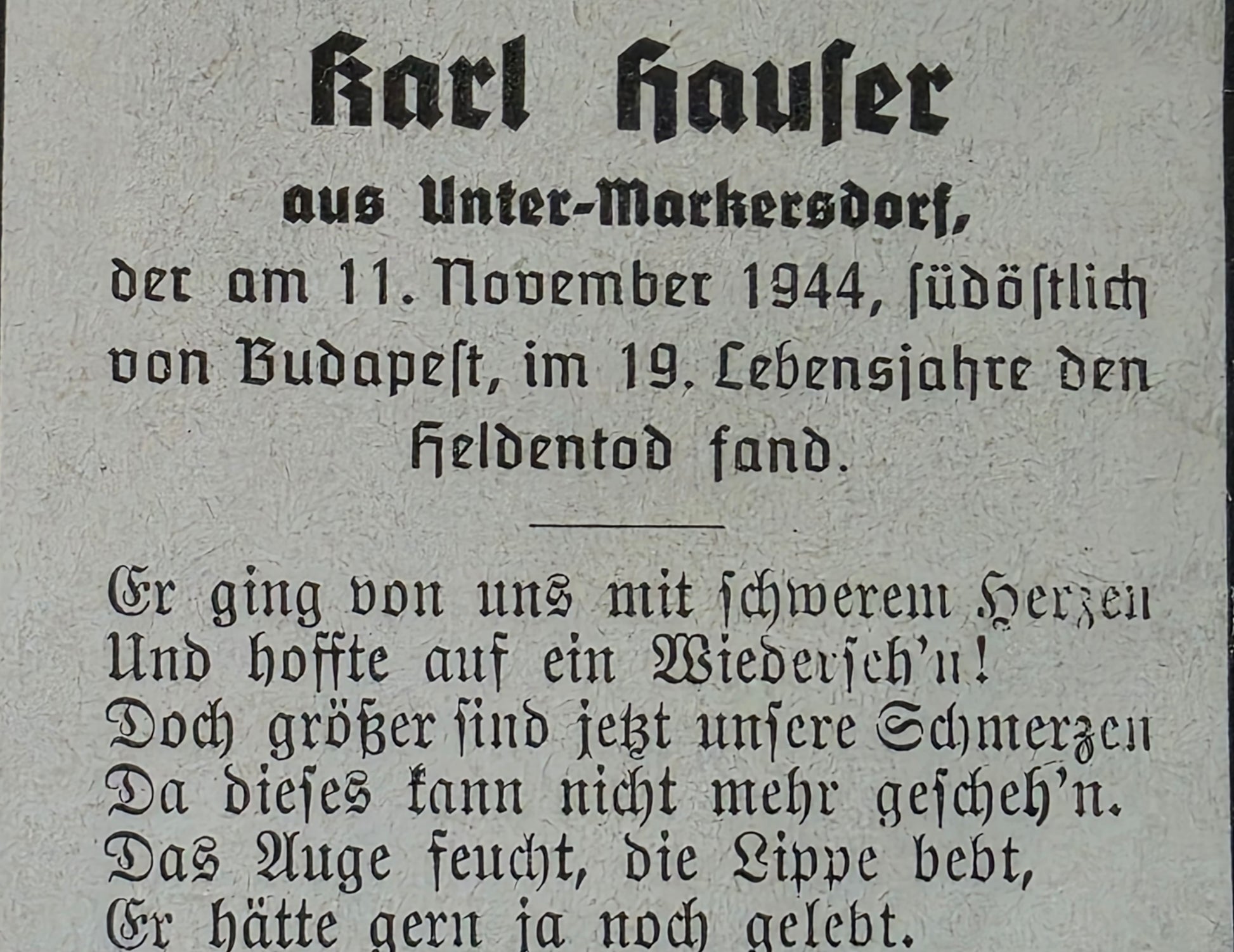 Gefallen am 11.11.1944 bei Monor / Budapest (Ungarn)