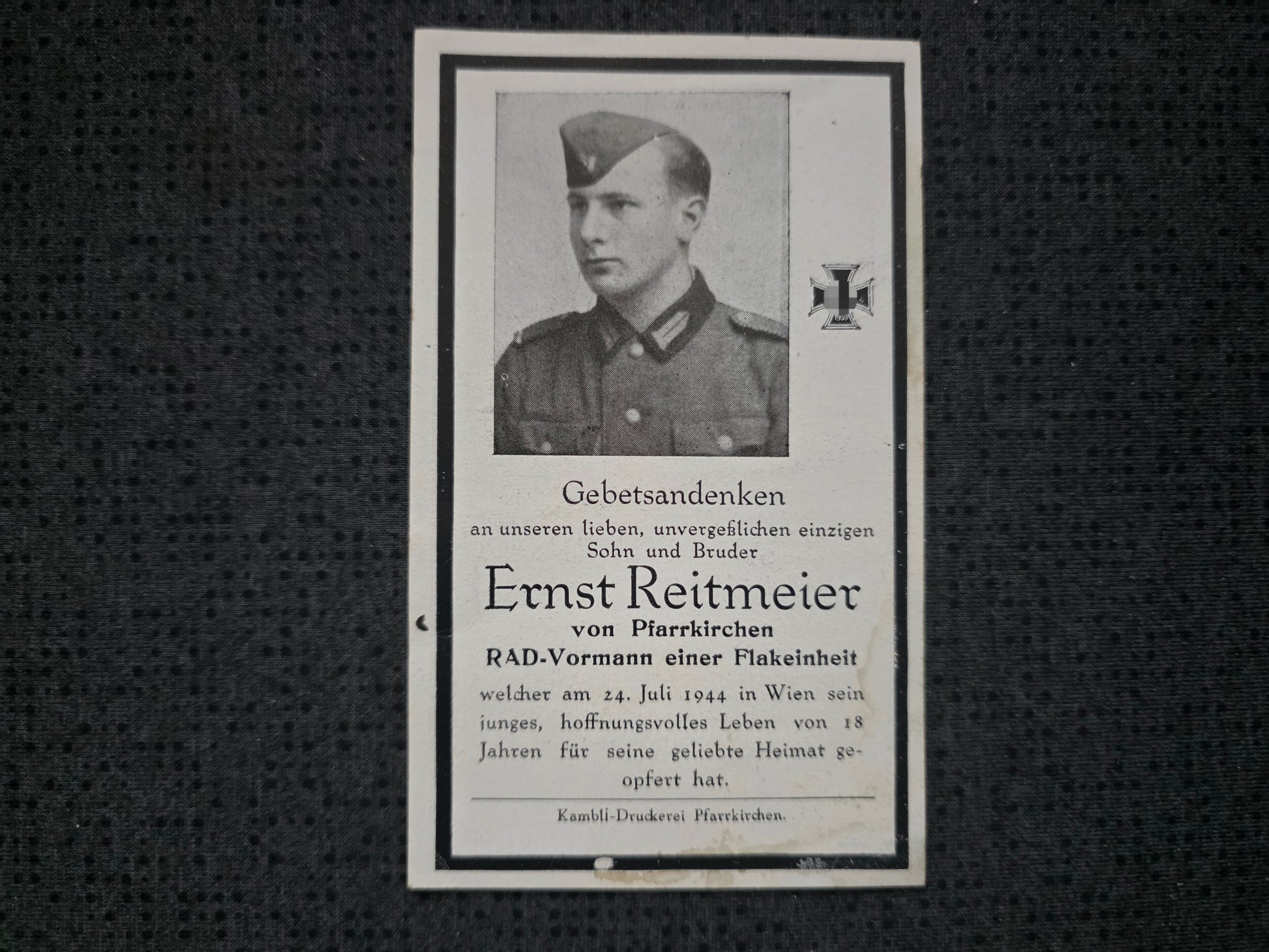 Sterbebild RAD-Vormann Pfarrkirchen Flak-Einheit Wien Österreich