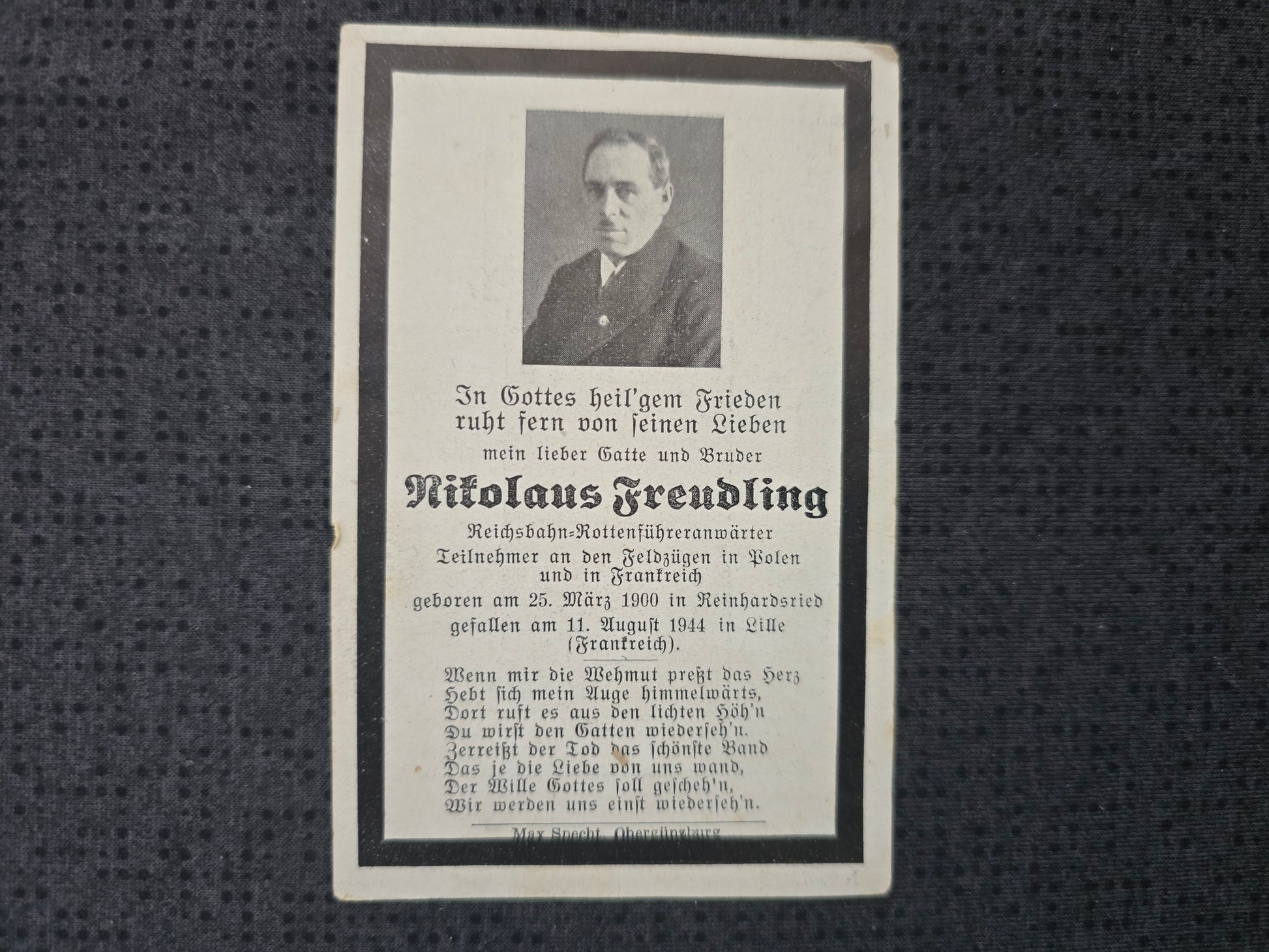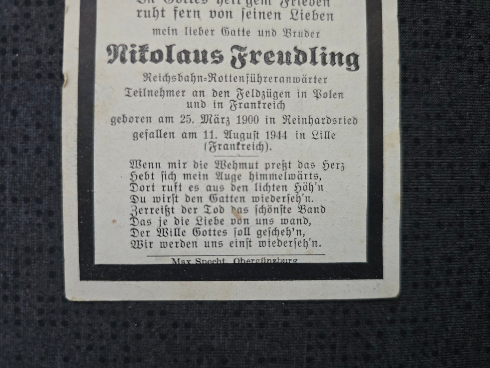 Sterbebild Reichsbahn Rottenführeranwärter Lille Bourdon Frankreich
