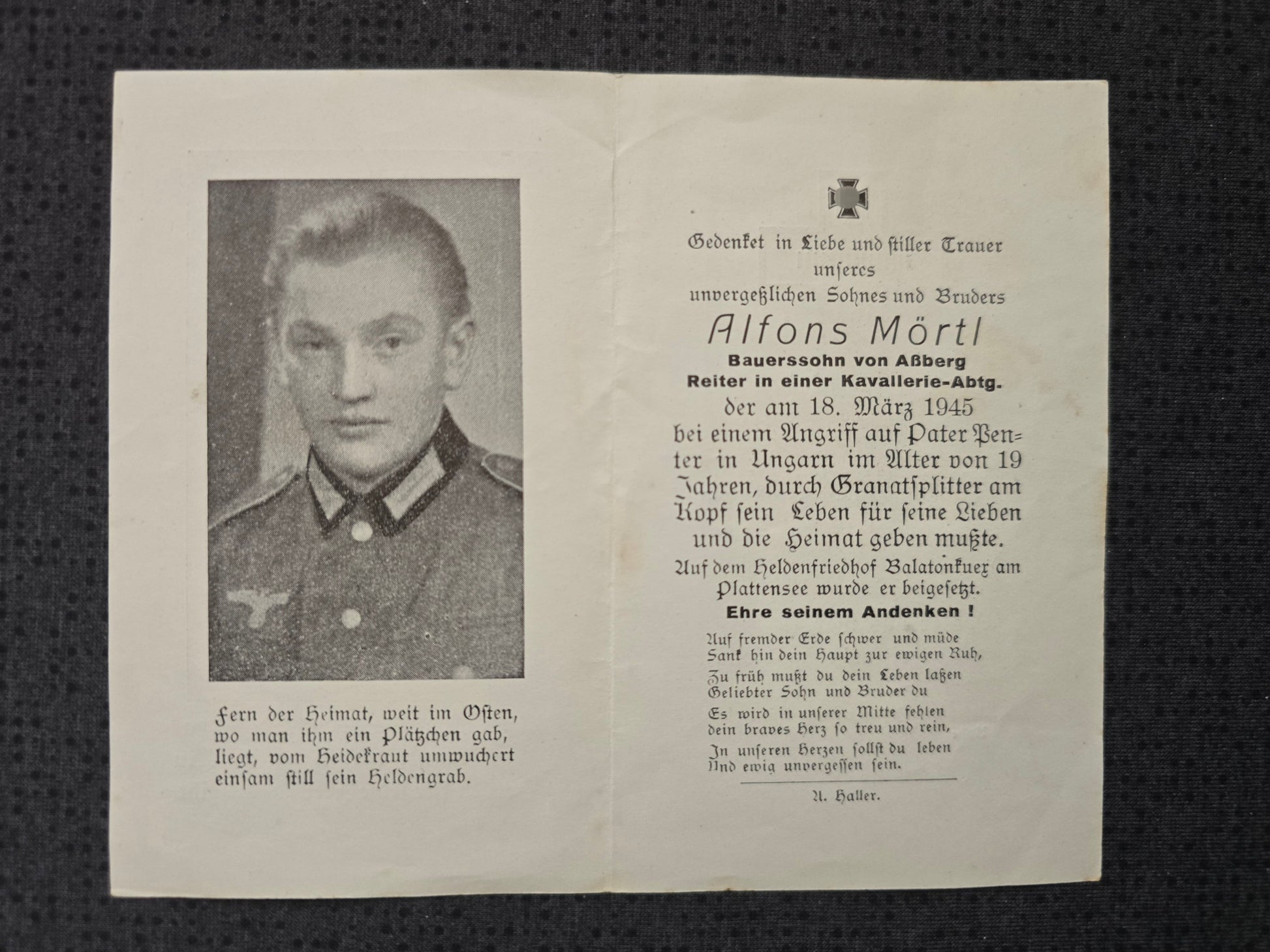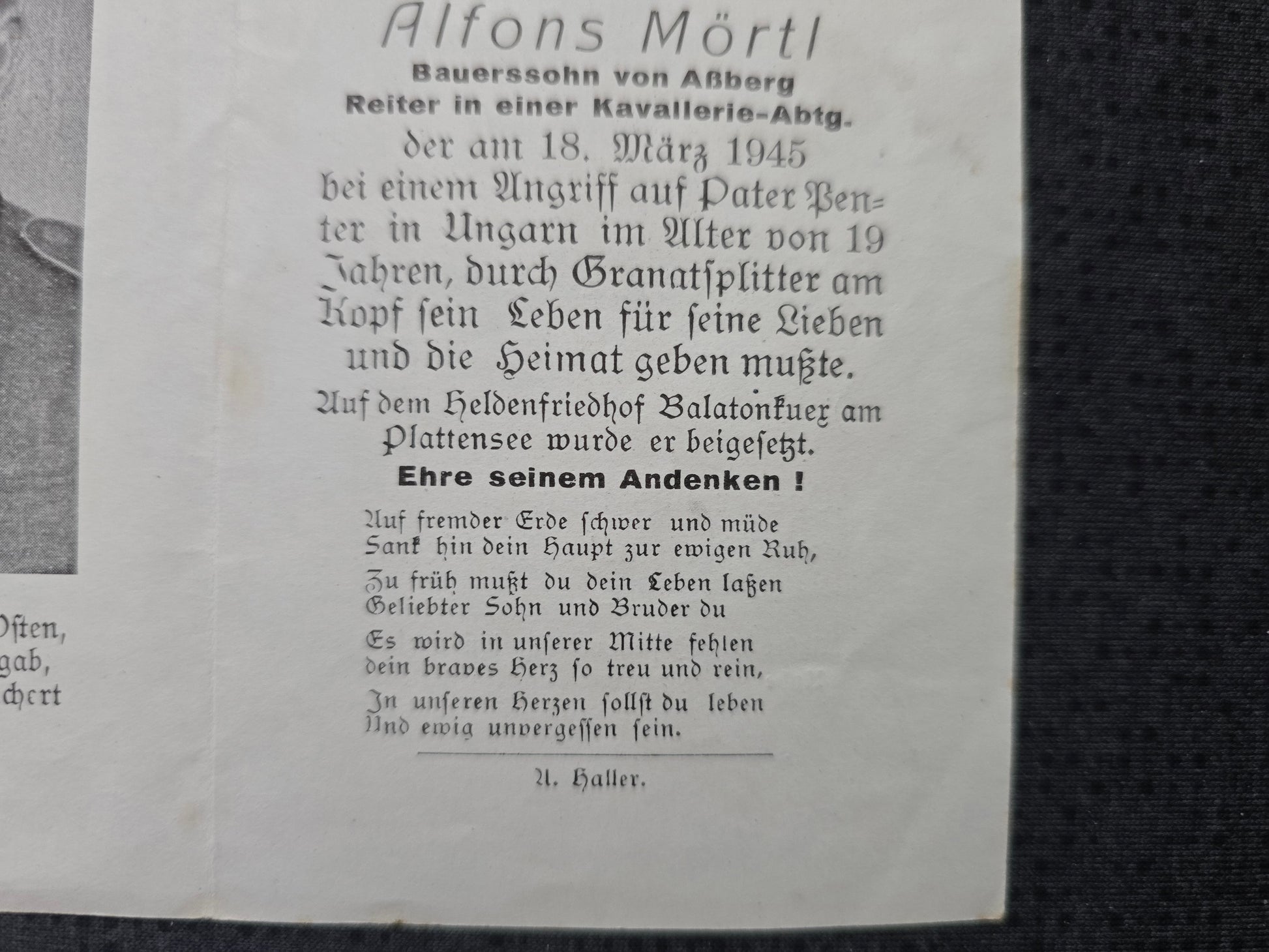 Sterbebild Reiter Aßberg Kavallerie Regt. Endkampf Balatonfüred Plattensee Ungarn