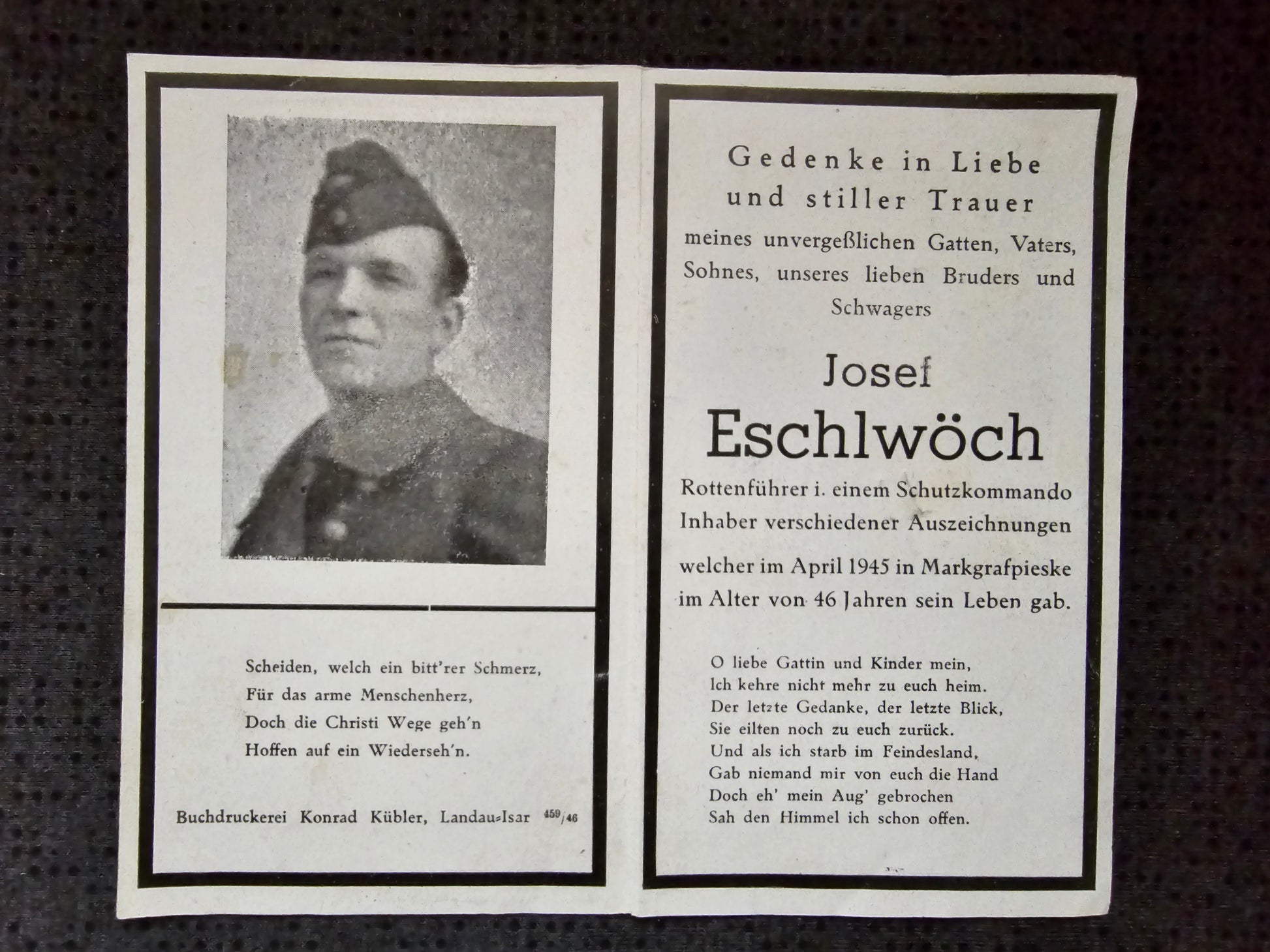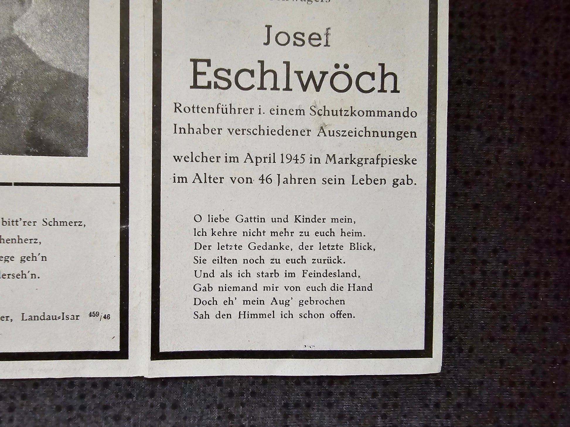 Sterbebild Rottenführer Schutzkommando Endkampf Markgrafpieske Beeskow Seelower Höhen