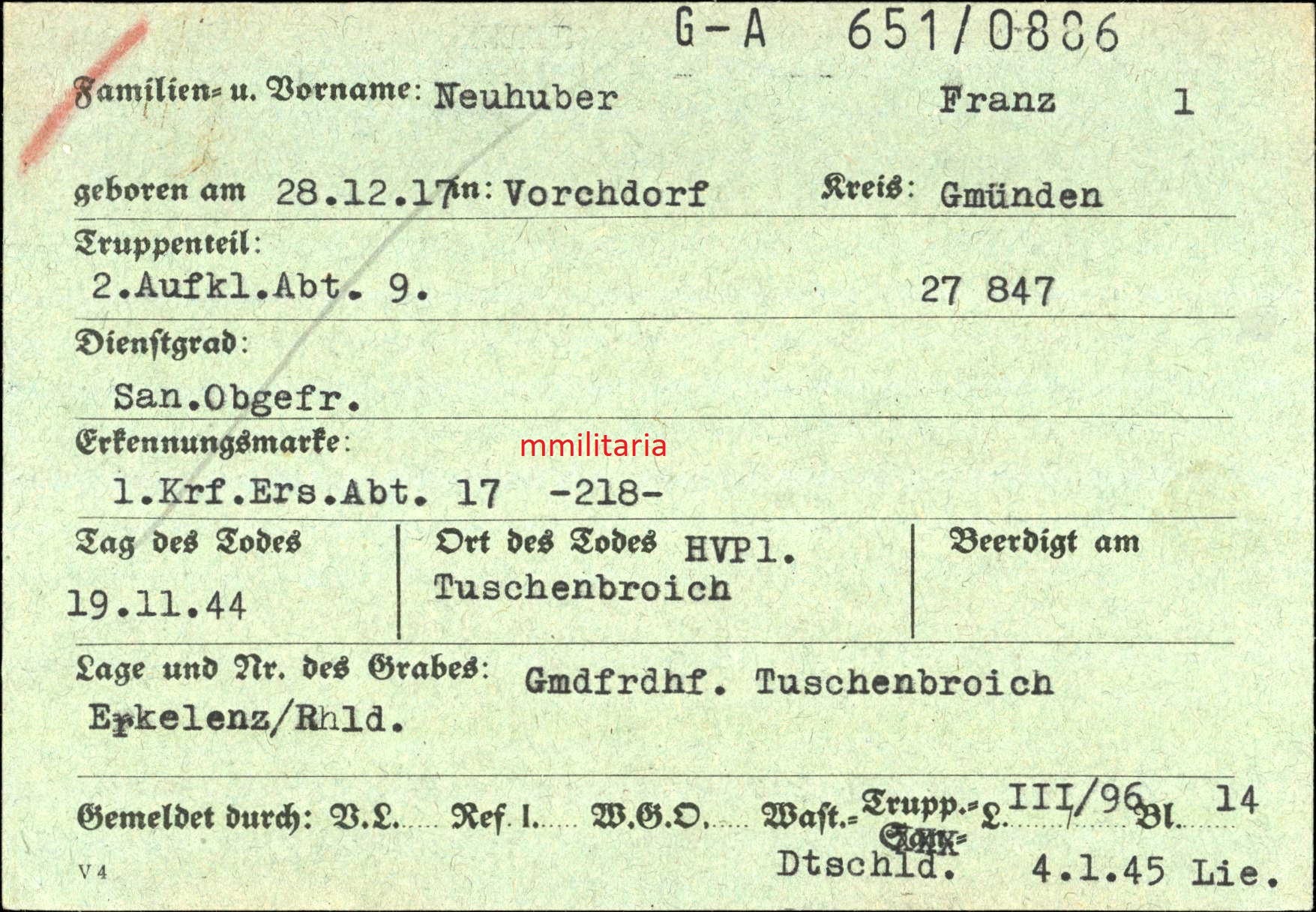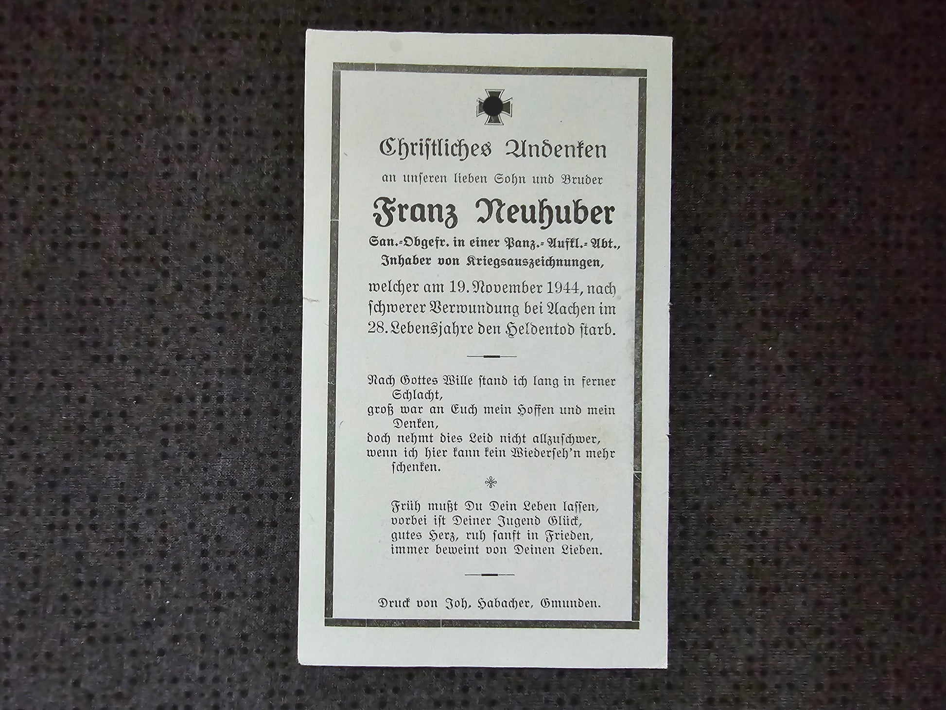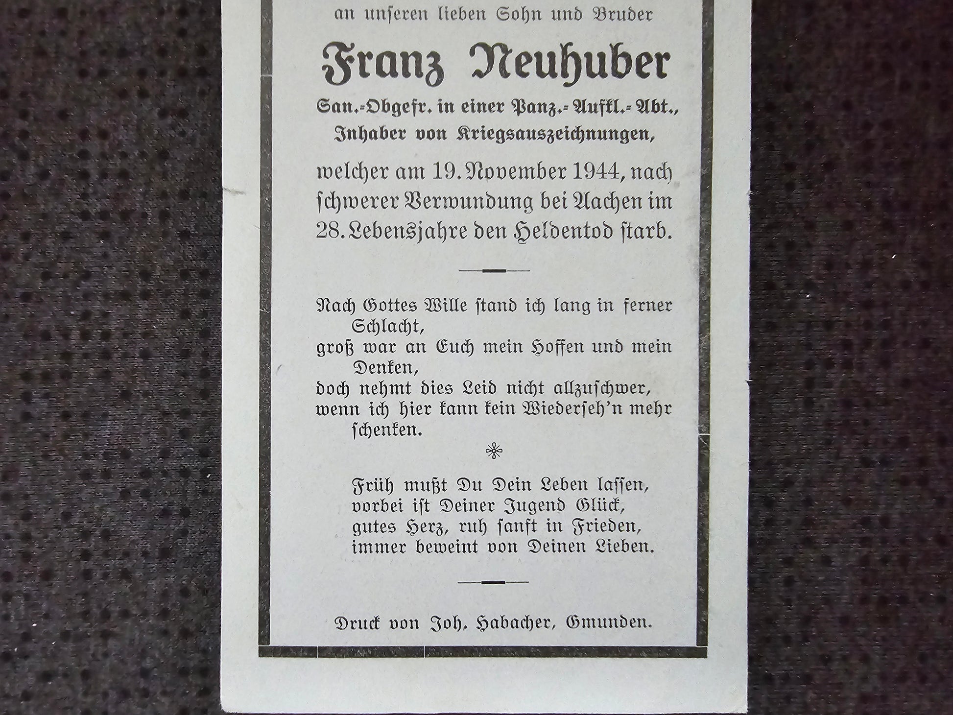 Sterbebild Sanitäts-Obergefreiter Vorchdorf 2. Panzer-Aufklärungs Abt. 9 Aachen Tuschenbroich Wegberg
