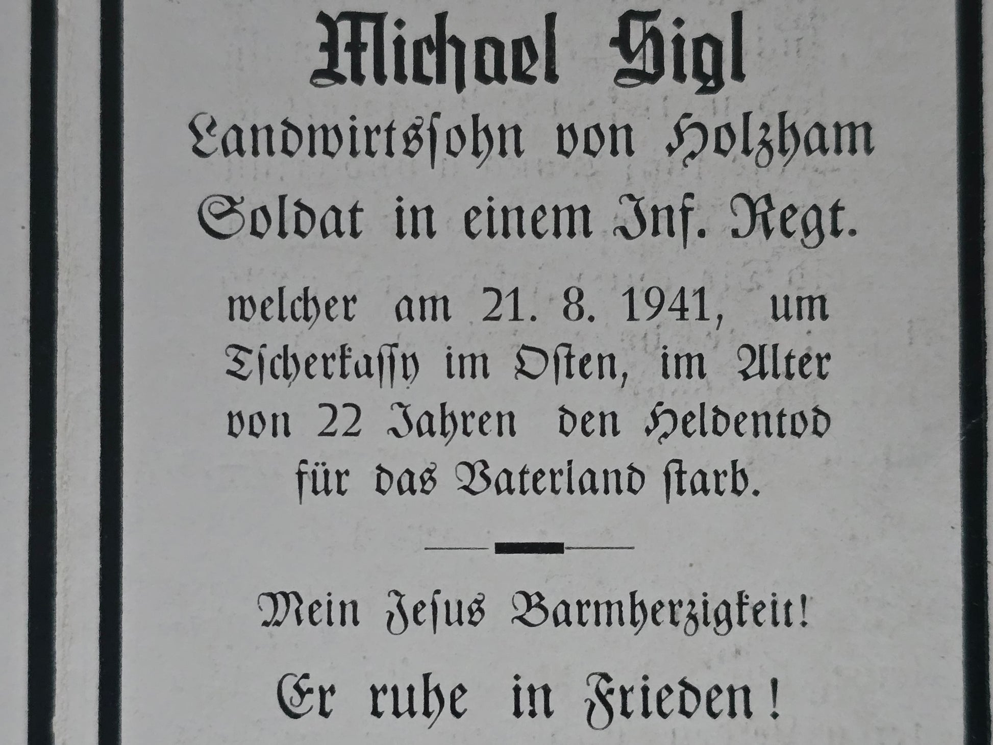 Sterbebild Schütze Holzham 3. Inf. Regt. 199 "List" Ruskaja Poljana Kiew Ukraine