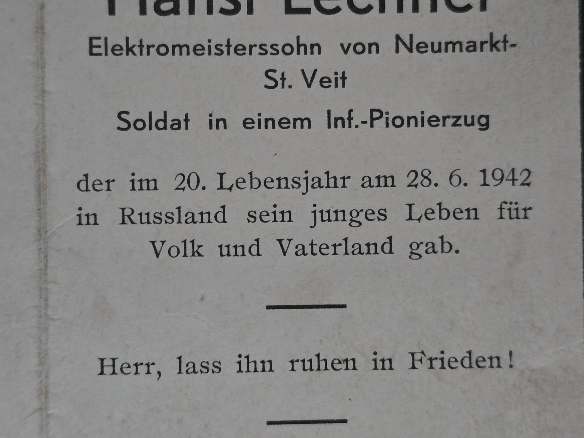 Sterbebild Schütze Neumarkt Infanterie-Pionierzug Höhe westl. Iwaniki Russland