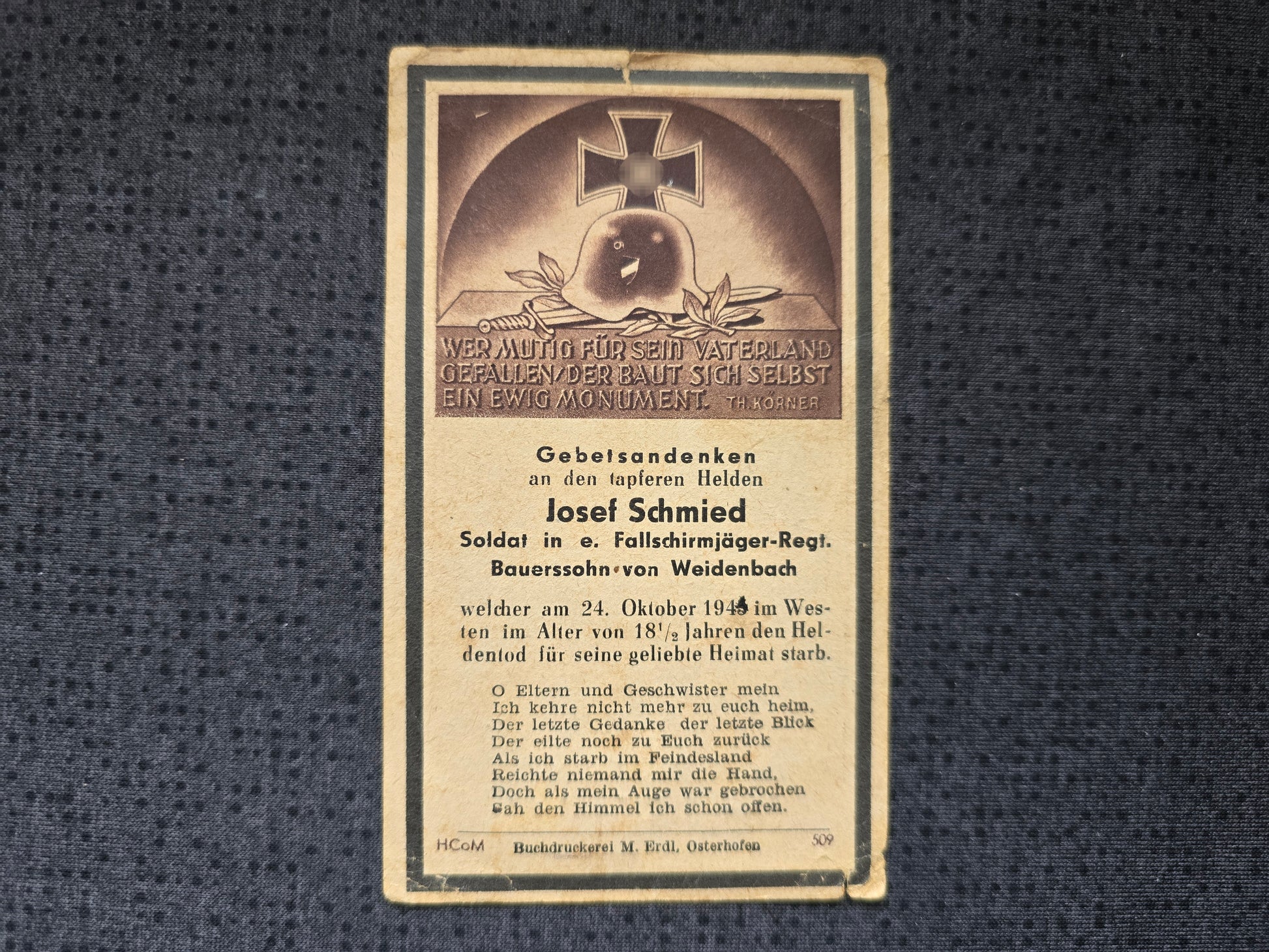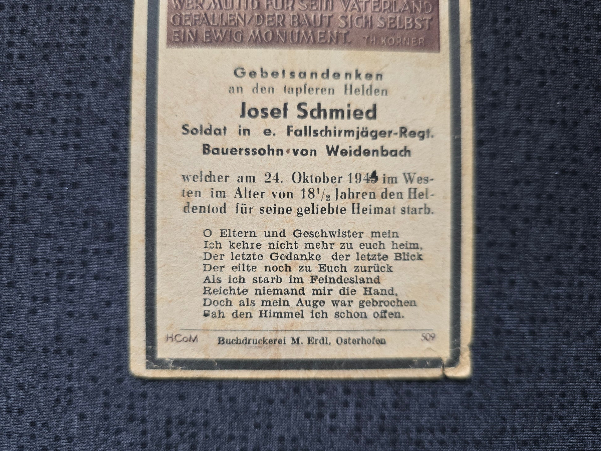 Sterbebild Schütze Weidenbach Fallschirmjäger Regt. Westen