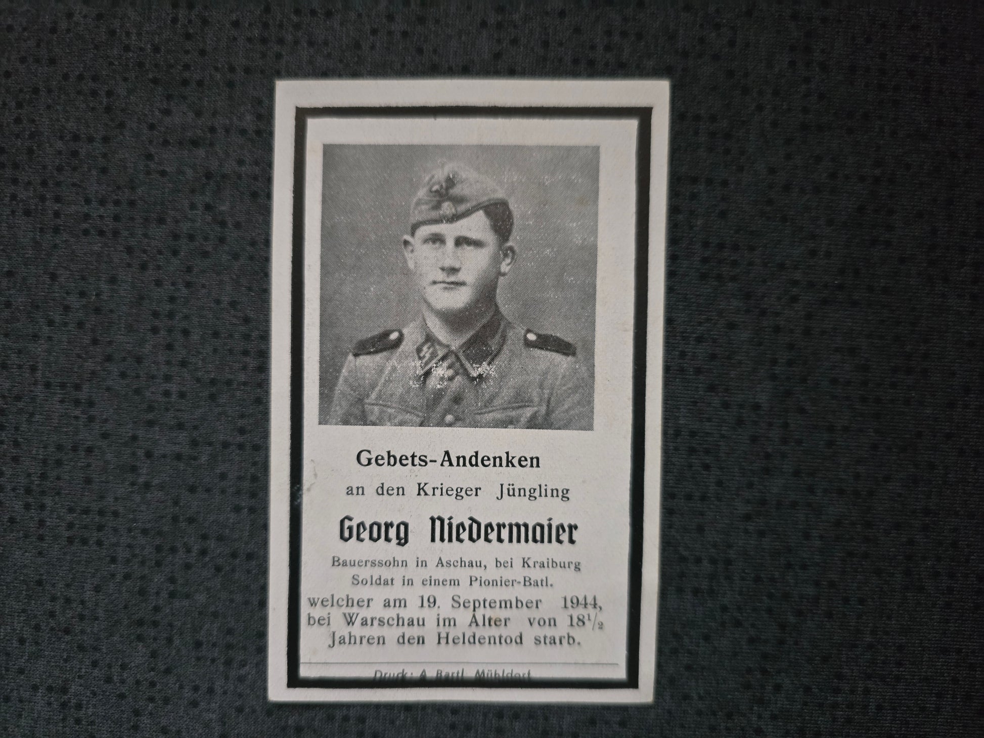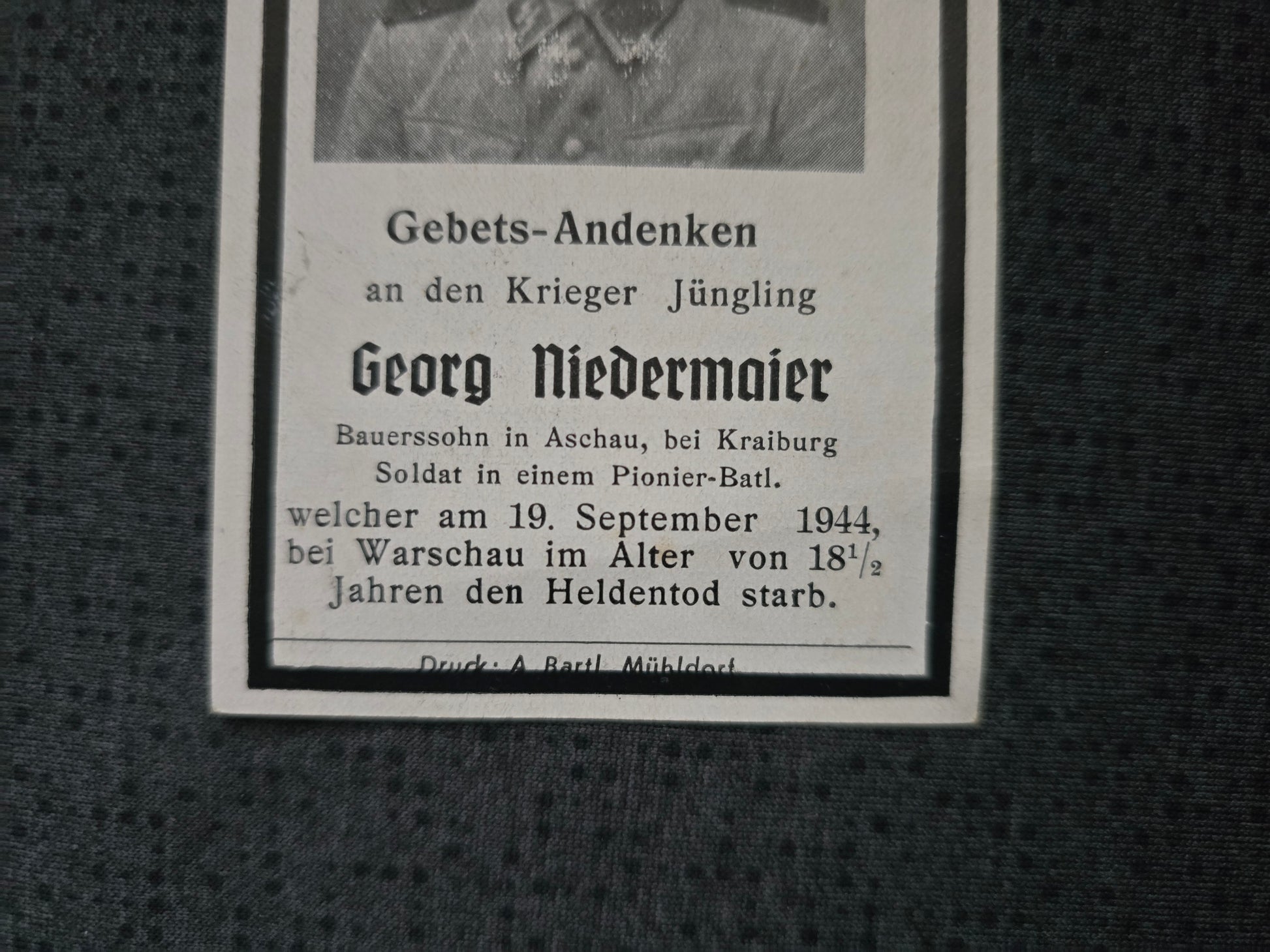 Sterbebild SS-Mann Kraiburg SS-Pionier Btl. Warschau Polen