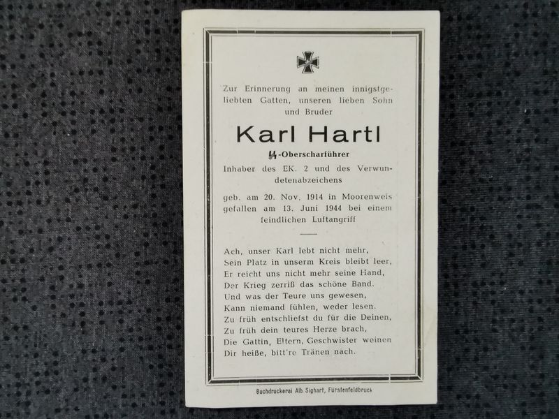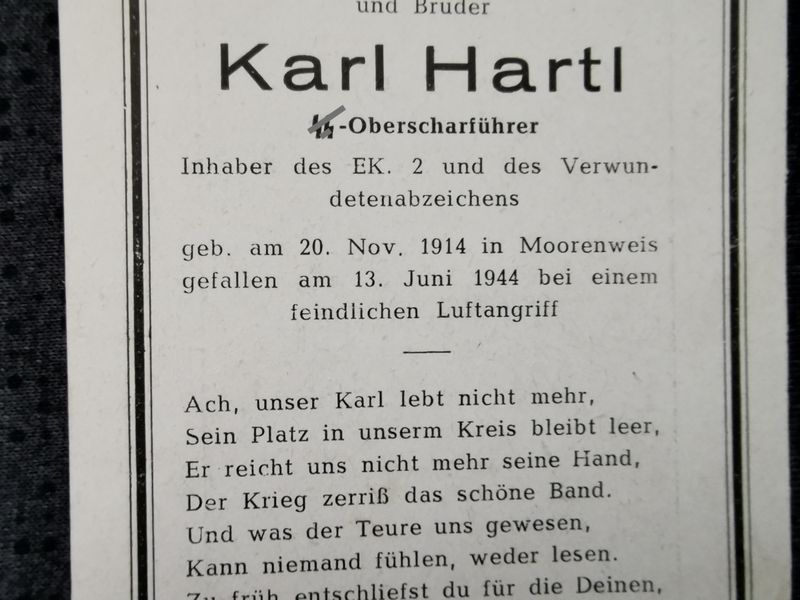 Sterbebild SS-Oberscharführer EK II VWA feindlicher Luftangriff