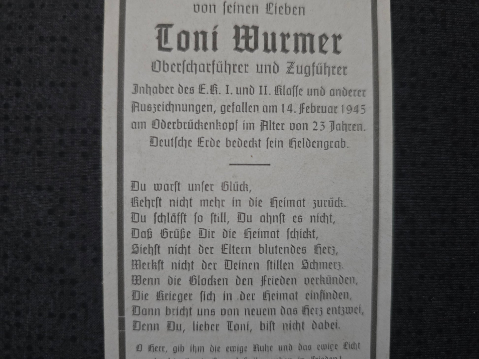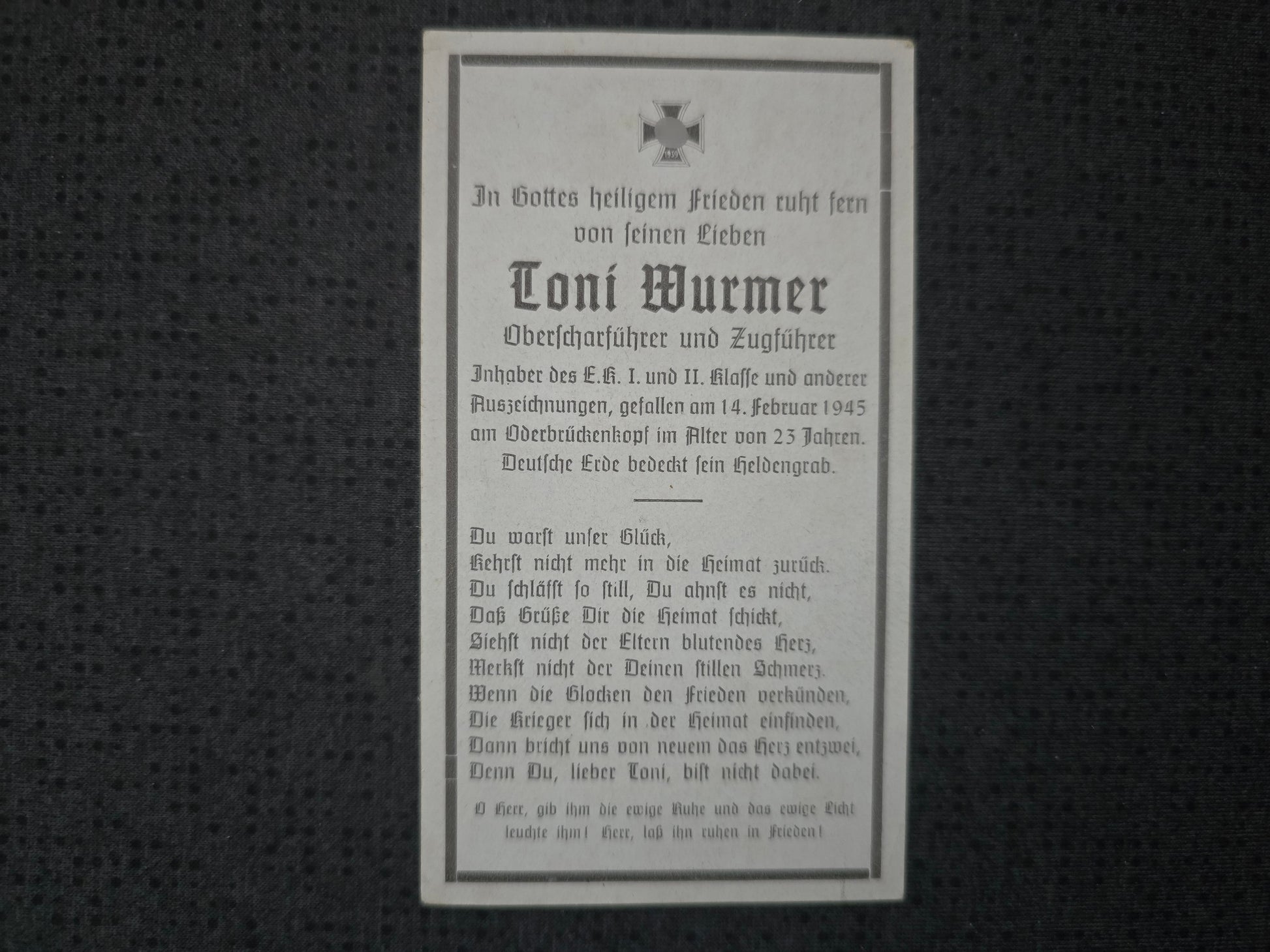 Sterbebild SS-Oberscharführer Mittenwald Zugführer Endkampf EK I&II Oderbrückenkopf Frankfurt Oder