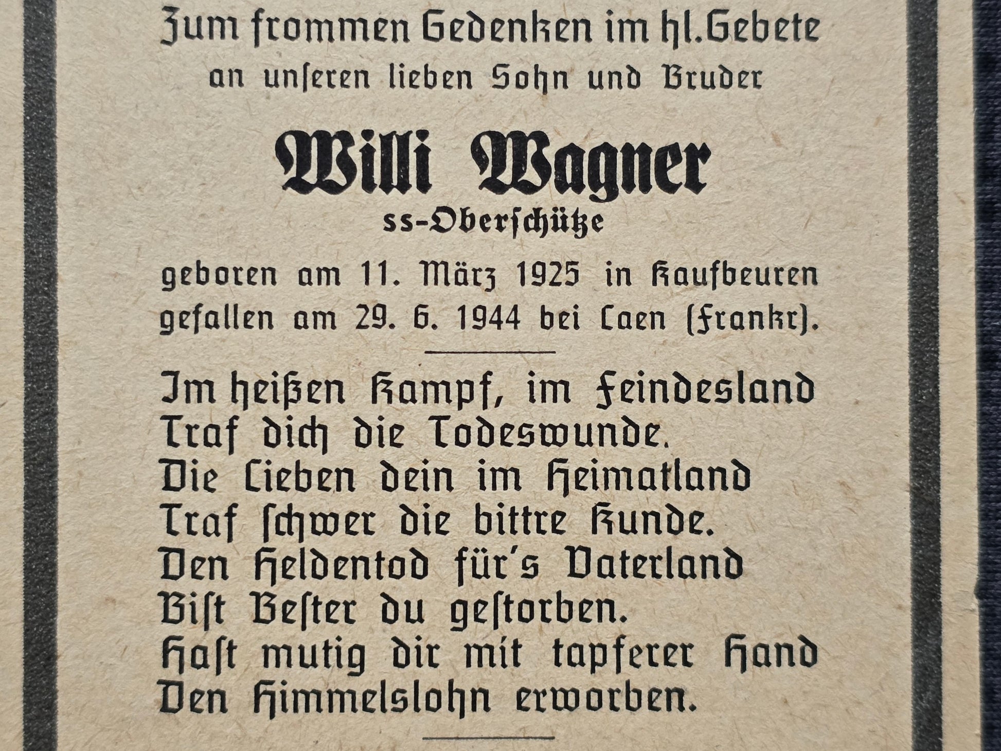 Sterbebild SS-Oberschütze Kaufbeuren Normandie Caen Frankreich