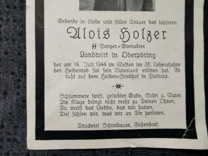 Sterbebild SS-Panzer Oberpöring Grenadier Poitiers Nouvelle-Aquitaine Westen Frankreich