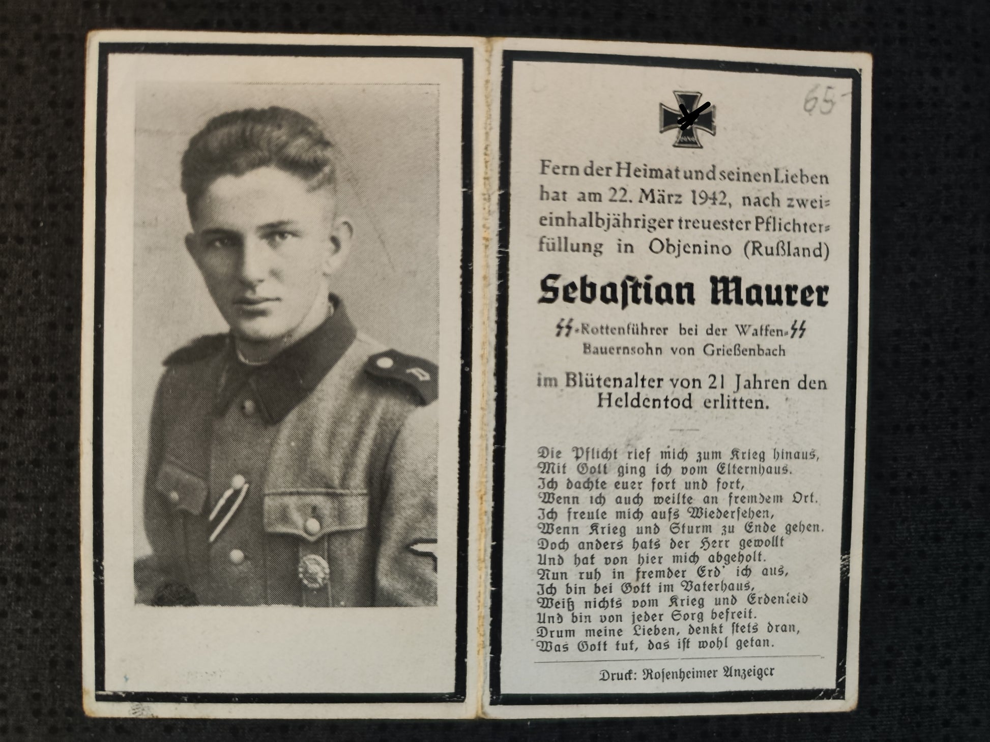 Gefallen am 22.03.1942 in Objenino (Russland)
