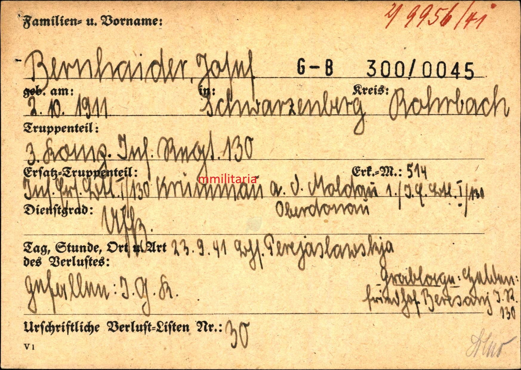 Gefallen am 23.09.1941 bei Peresjaslawskaja (Ukraine)