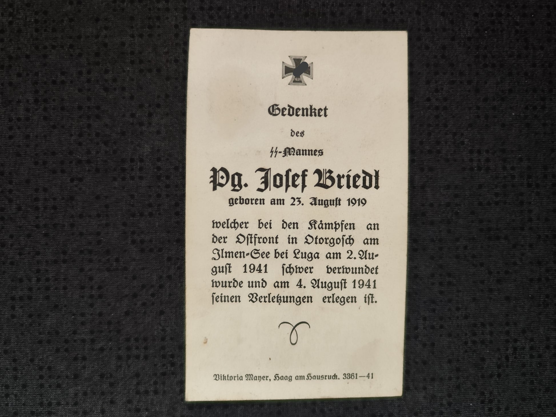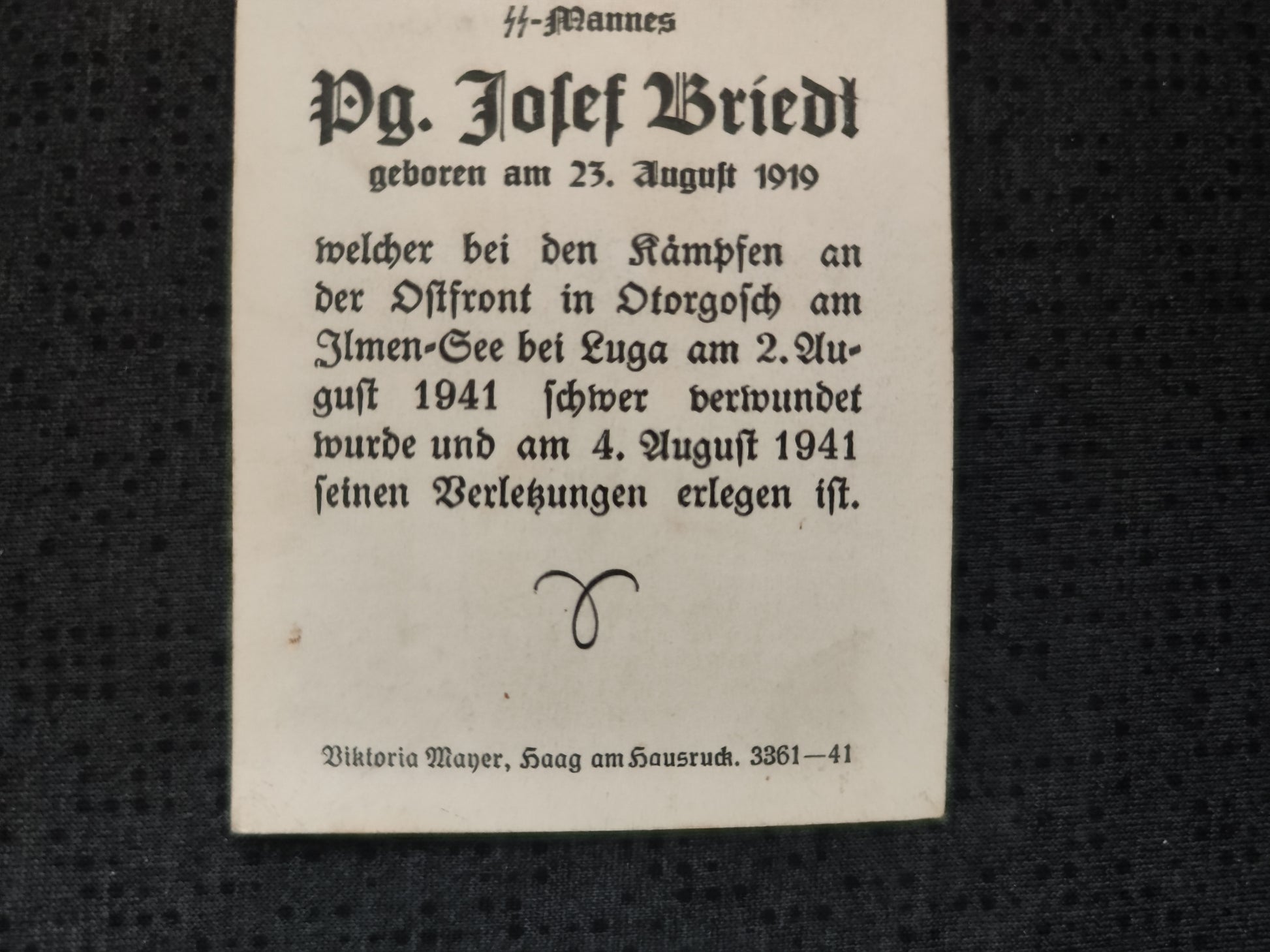 Sterbebild SS-Sturmmann 16. SS "Totenkopf" Infanterie Regt. 3 Echtfoto Utorgosch Ilmensee Russland