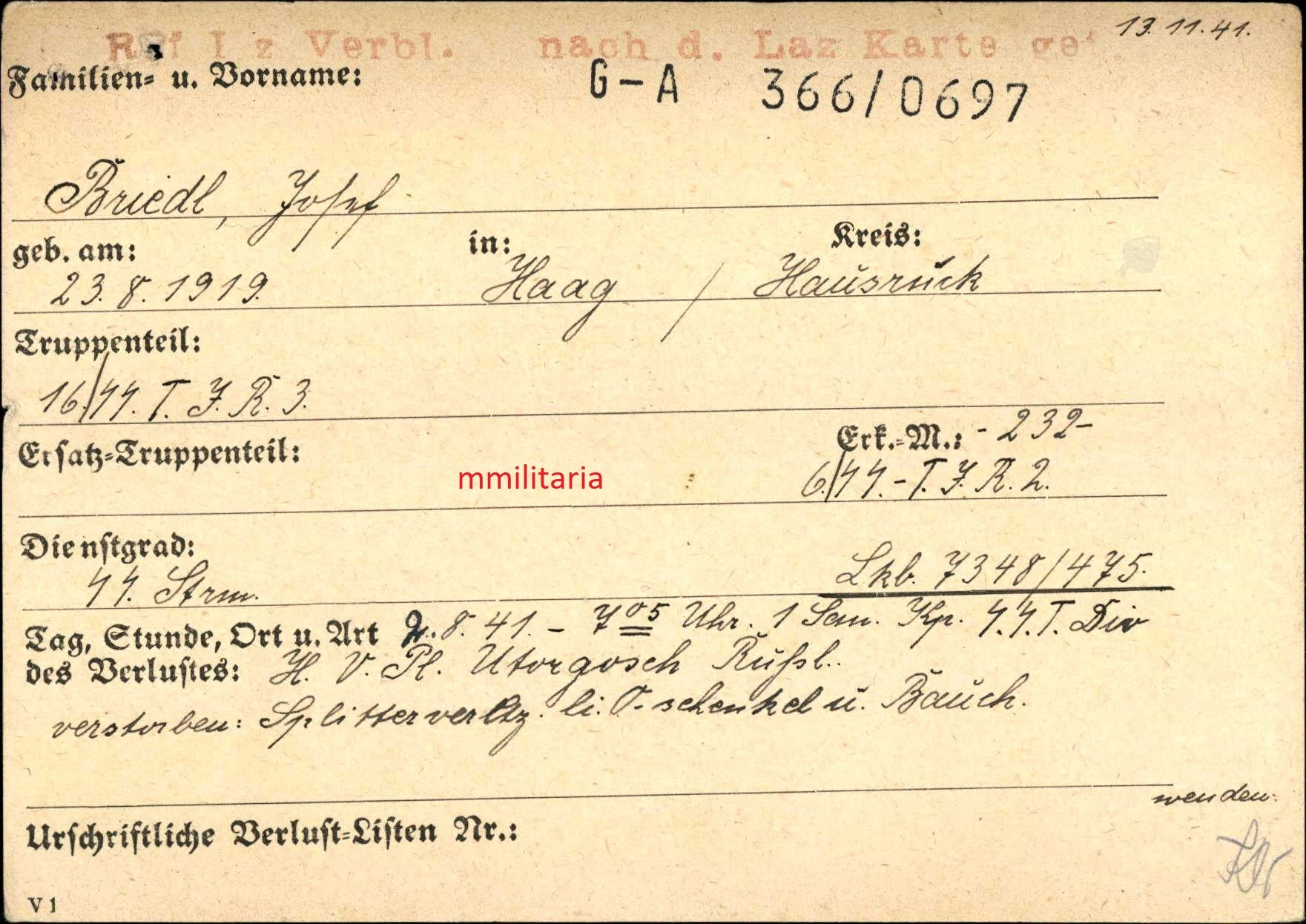Gefallen am 02.08.1941 in Utorgosch (Russland)