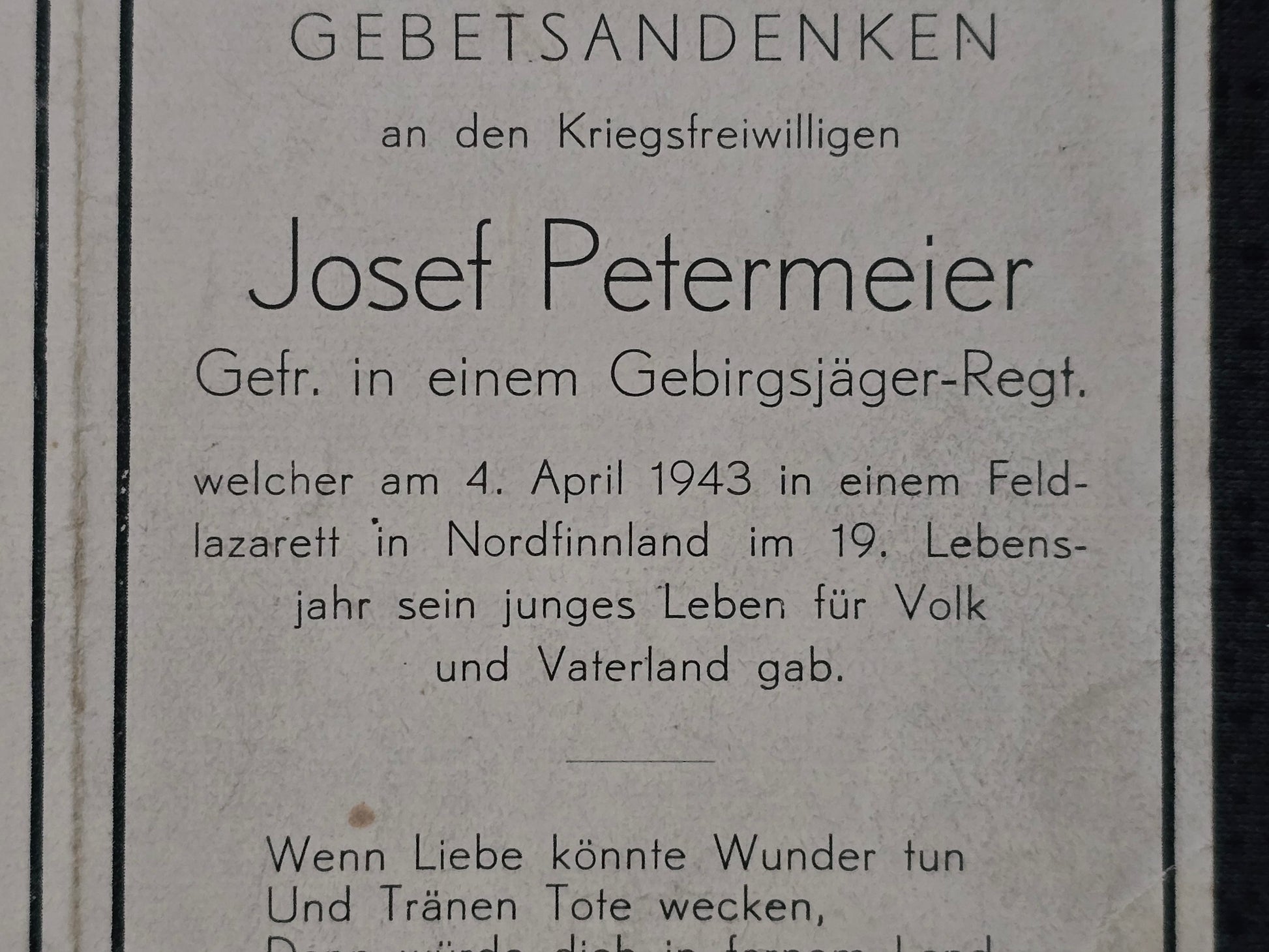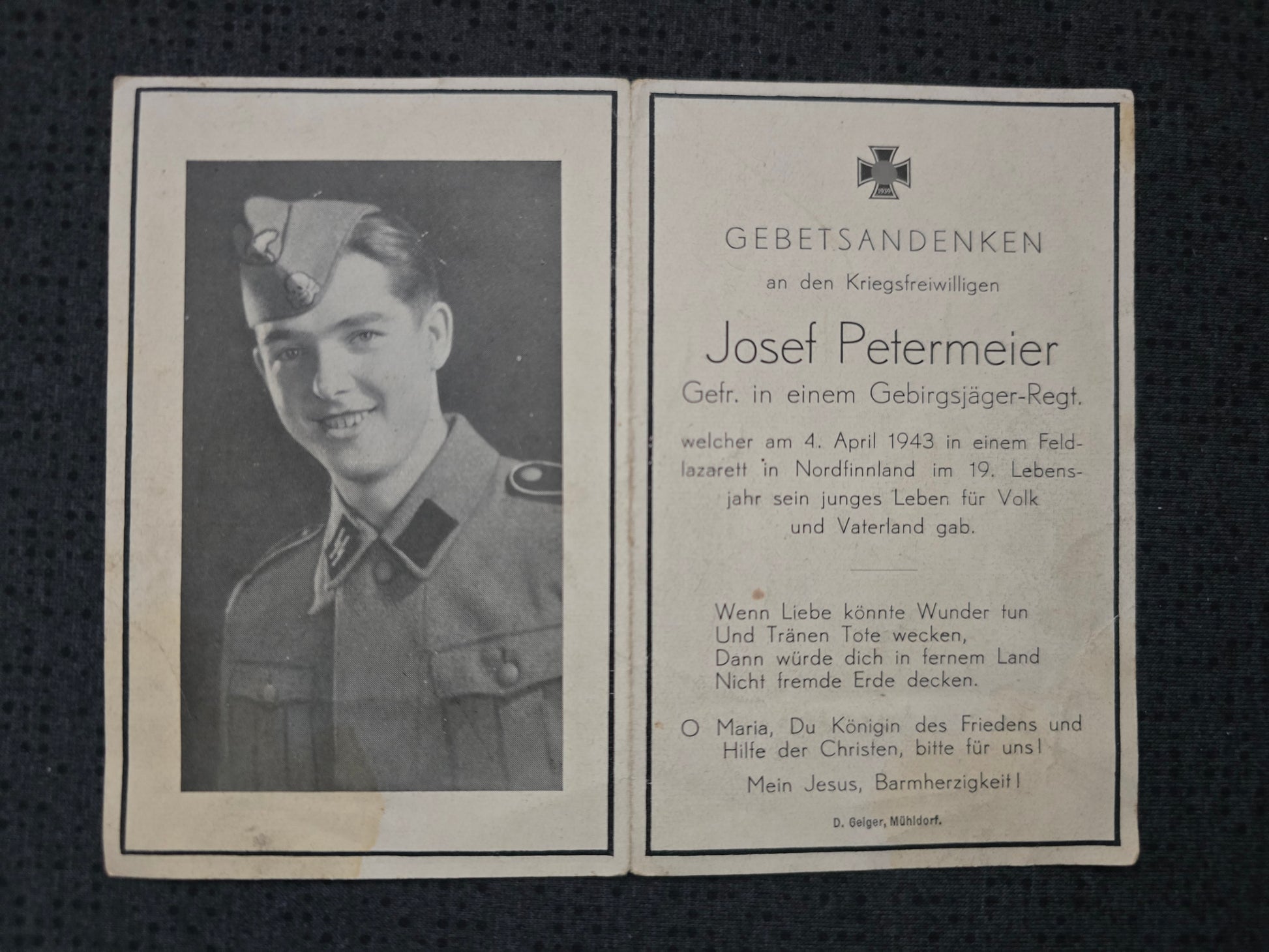 Sterbebild SS-Sturmmann Gebirgsjäger Regt. Rovaniemi-Norvajaervi Finnland