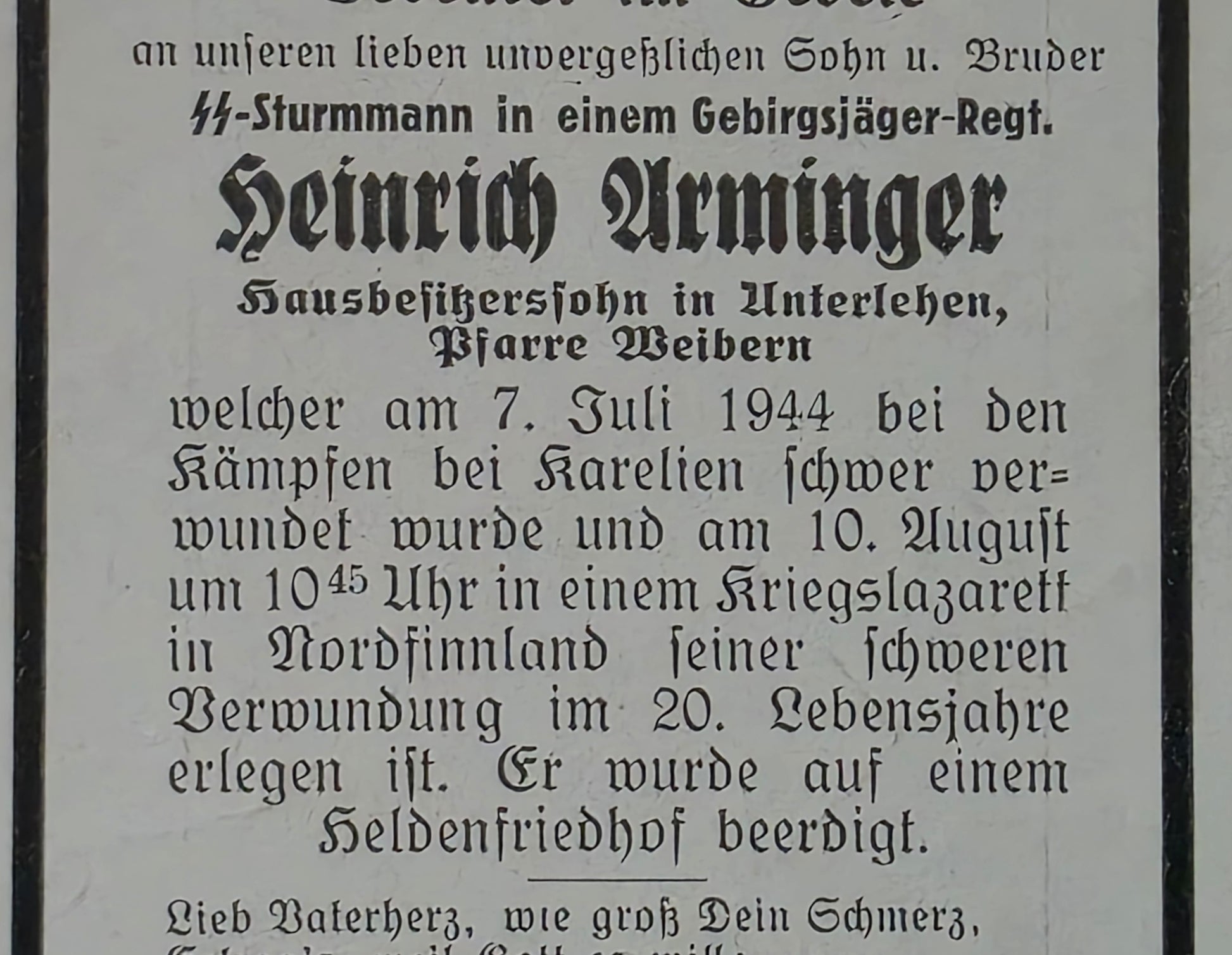 Sterbebild SS-Sturmmann Unterlehen Gebirgsjäger Regt. Karelien Rovaniemi-Norvajaervi Finnland