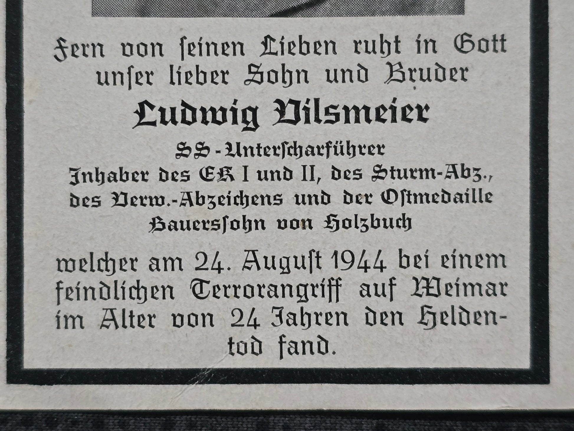 Sterbebild SS-Unterscharführer Holzbuch EK II Terrorangriff Weimar Deutschland