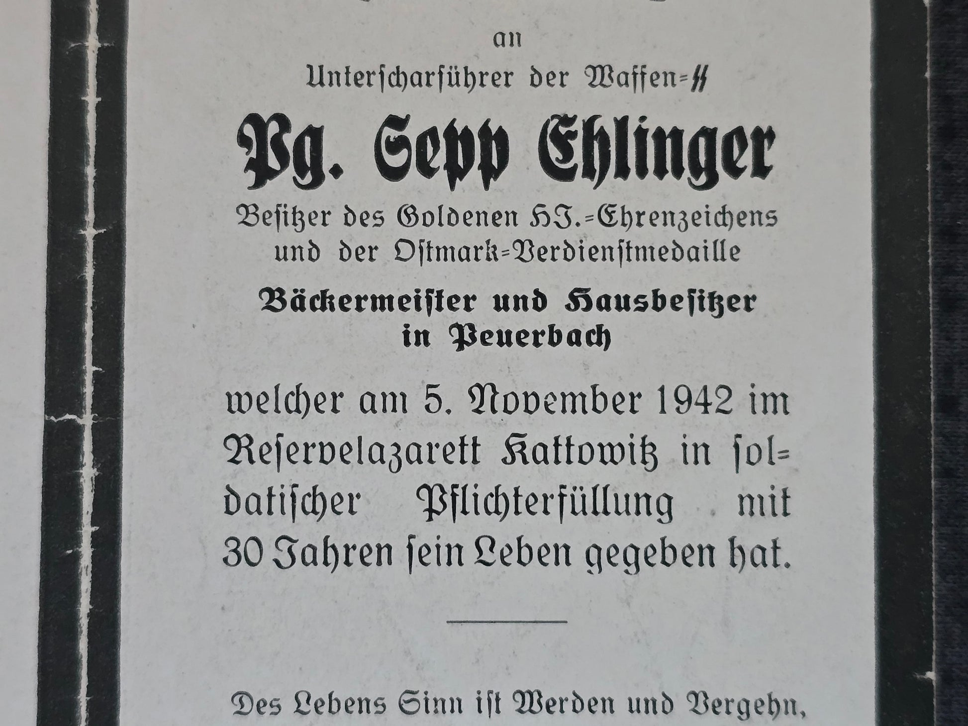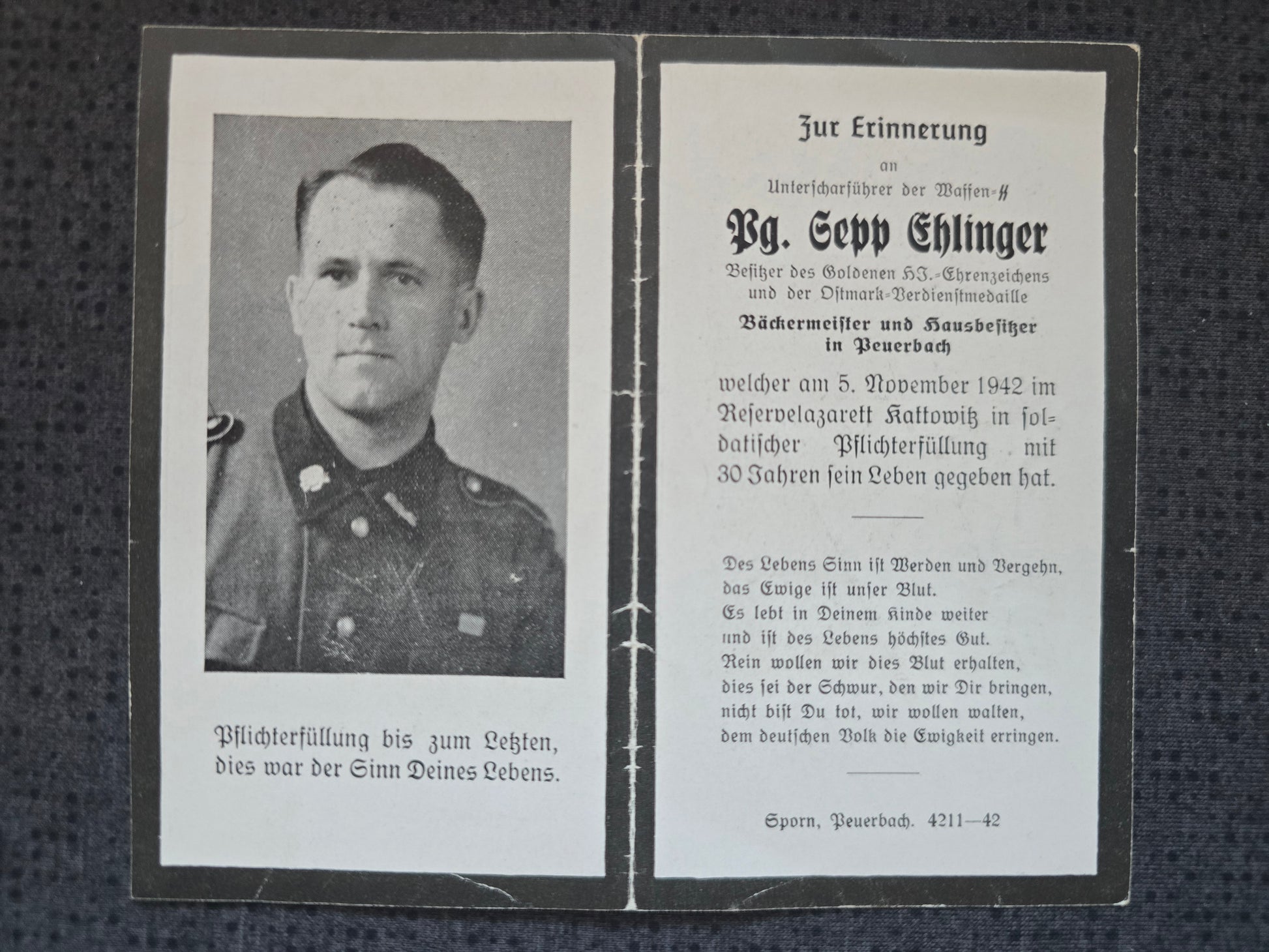 Sterbebild SS-Unterscharführer Peuerbach SS-Totenkopf Sturmbann KL Auschwitz Kattowitz Polen