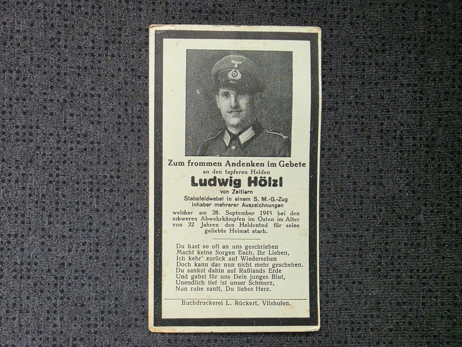 Sterbebild Stabsfeldwebel Algerting 11. Komp. Gren. Regt. 747 Abwehrkämpfe Osten