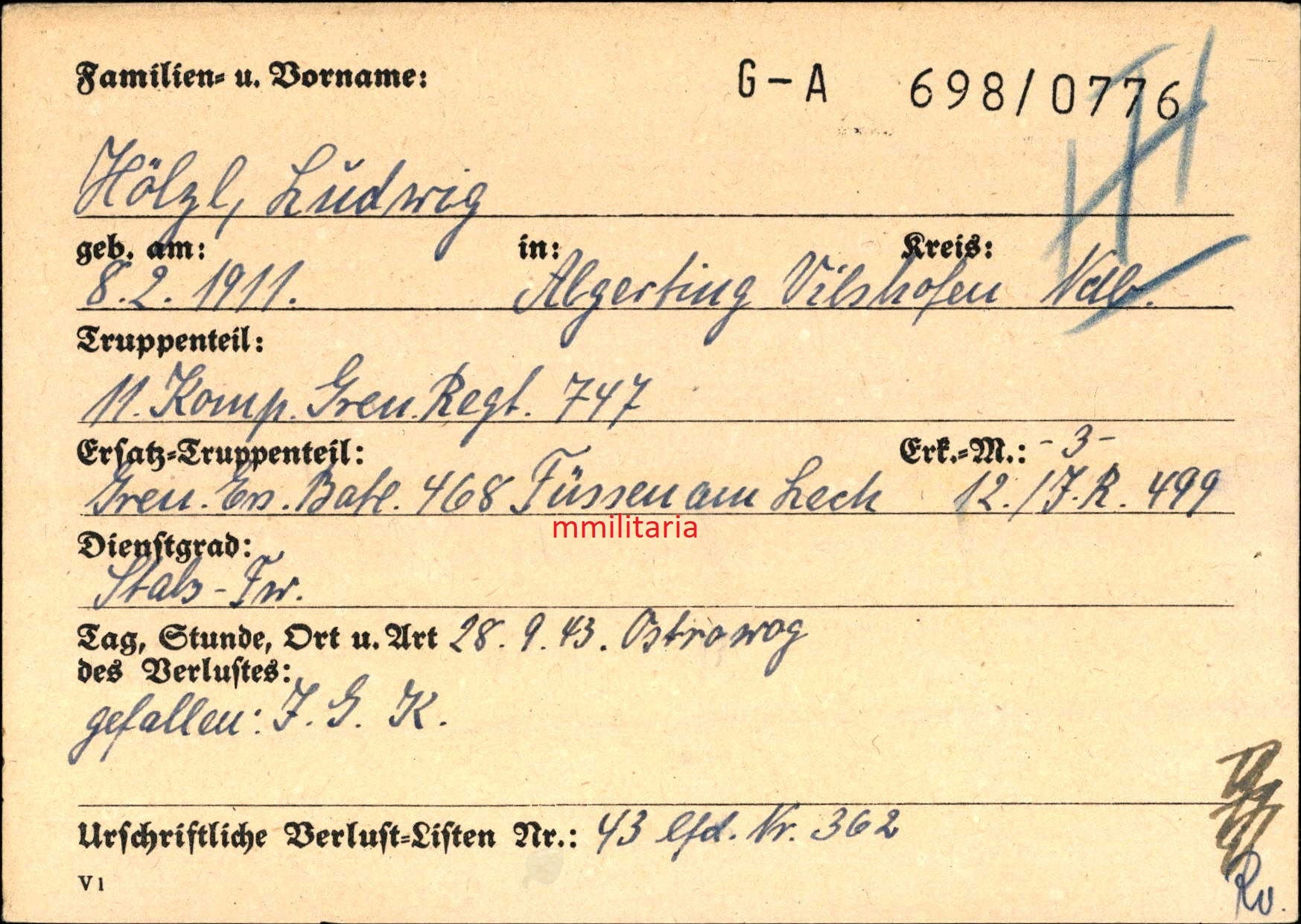 Stabsfeldwebel 11. Komp. Gren. Regt. 747