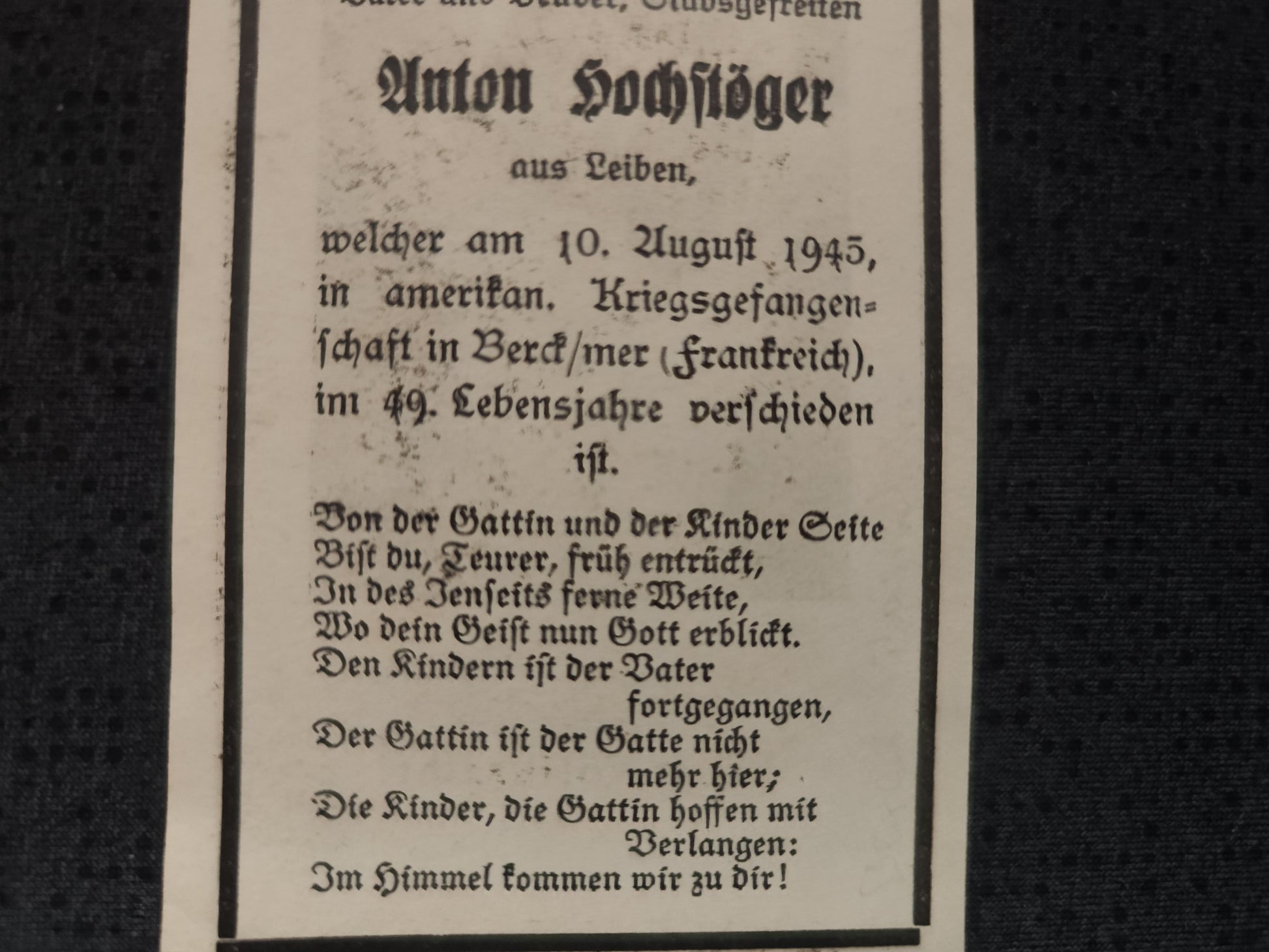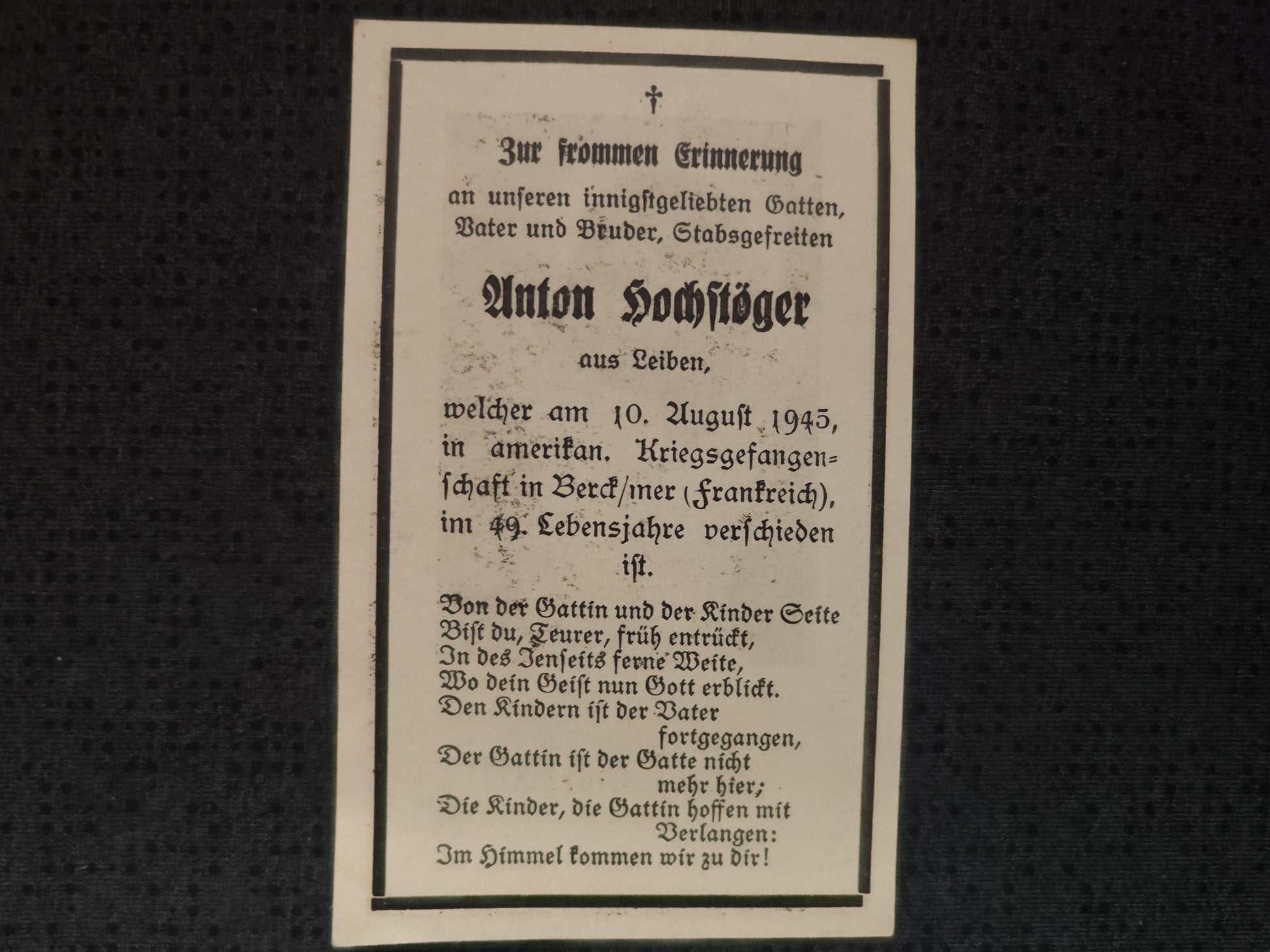 Sterbebild Stabsgefreiter Leiben Amerikanische Gefangenschaft Berck Bourdon Frankreich